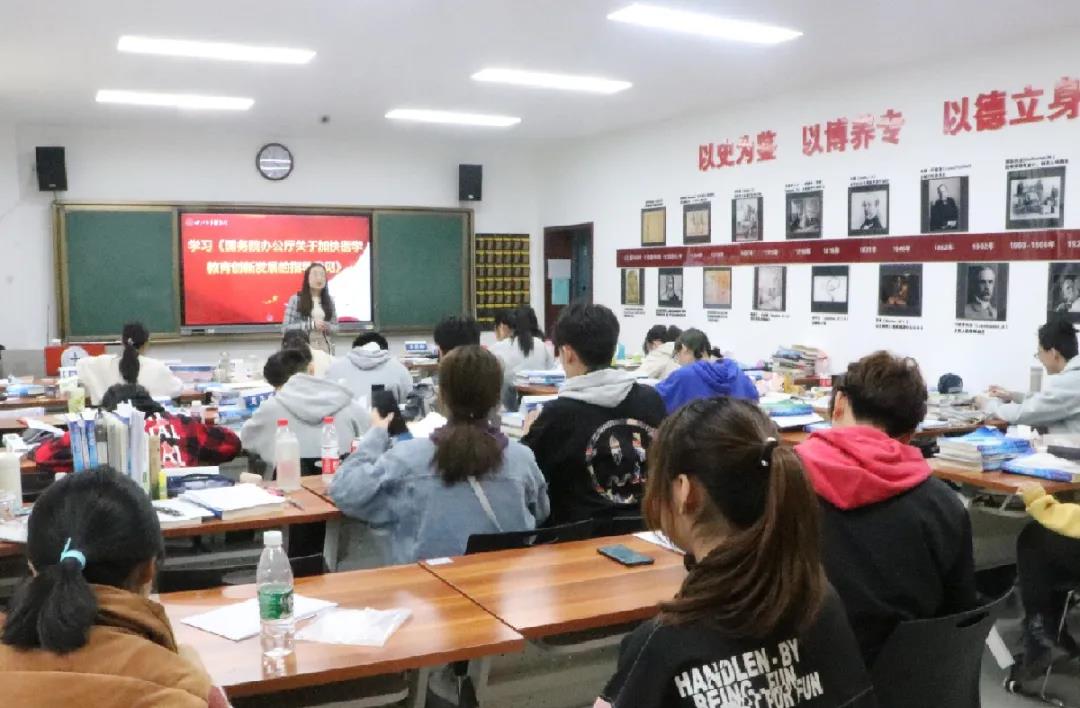 为深入学习党的十九届五中全会精神,落实立德树人根本任务,把医学教育摆在关系教育和卫生健康事业优先发展的重要地位,银河集团官网组织师生集中学习了《中国共产党第十九届中央委员会第五次全体会议公报》《党的十九届五中全会〈建议〉学习辅导百问》《国务院办公厅关于加快医学教育创新发展的指导意见》,以党的最新政策精神和理论成果,引领全院事业发展。