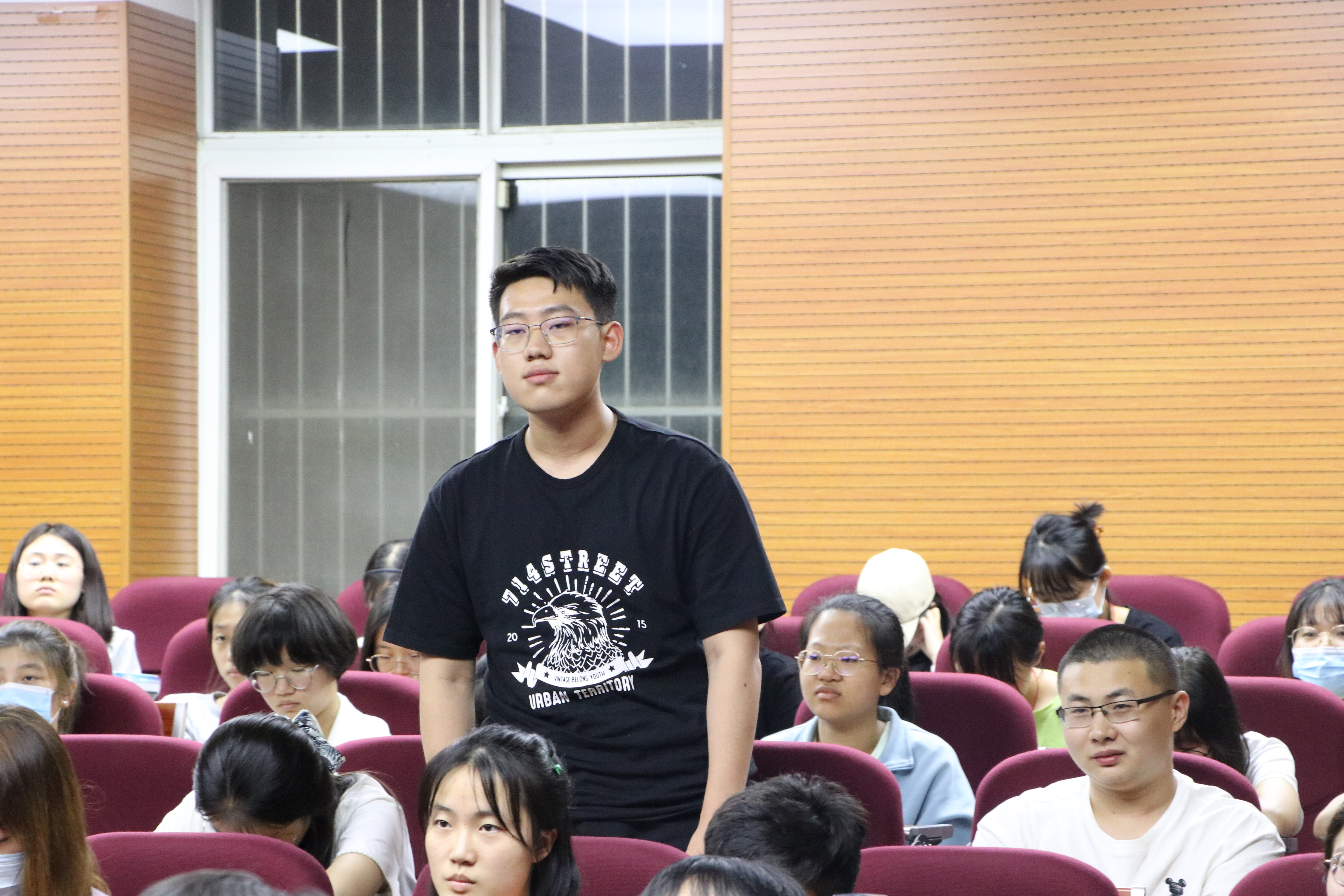 葛江洋教授以1934年的中国工农红军长征入选美国时代生活出版的《人类1000年》公布的人类历史进程中的100件重要事件说起,生动地讲述了血战湘江、强渡大渡河、飞夺泸定桥、征服冰山雪岭,穿越草地等长征路上的故事。通过一个个动人故事,一组组震撼人心的数字对比,同学们仿佛穿越历史的长河,回到那个战火纷飞动人心魄的时代,更真切地感受到红军战士执着理想英勇奋斗作出的巨大牺牲,更深刻地体会到红军战士征服一切困难的英雄气概和革命精神。葛江洋讲到,长征留给我们最宝贵的精神财富就是伟大的长征精神。经历过长征淬炼的中国共产党人和人民军队,赢得了抗日战争、抗美援朝的伟大胜利、取得了国防科技、航空航天等一系列伟大成果。他强调,回望历史,我们要铭记今天的幸福生活是无数先辈们流汗、流血和牺牲拼来的,明天的幸福要靠我们这一代人的接力奋斗。他希望,每一位青年学子在建设中国特色社会主义新长征路上要弘扬伟大长征精神,坚定信念,奋勇前进,为实现中华民族的伟大复兴贡献力量。