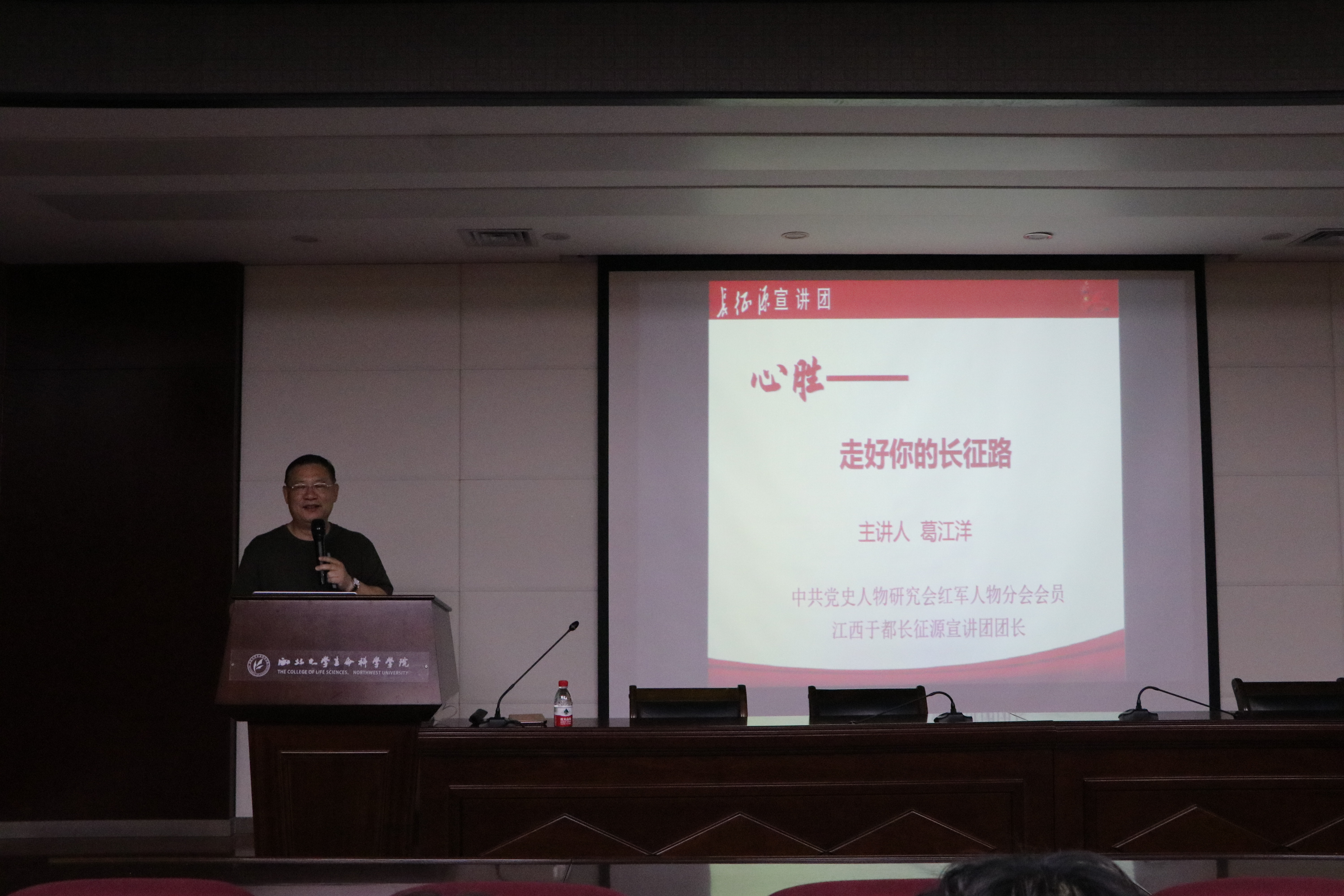为深入学习贯彻习近平总书记在党史学习教育动员大会上的重要讲话精神,扎实开展党史学习教育,6月14日,银河集团官网武装部、生命科学与医学部联合举办长征精神专题学习活动,邀请原沈阳军区某部政治部主任、解放军退役大校、中共党史人物研究会红军人物分会会员葛江洋教授做“心胜——走好你的长征路”主题报告。武装部部长郝团虎、生命科学与医学部师生代表参加学习。本次报告由银河集团官网副书记杨涛主持。