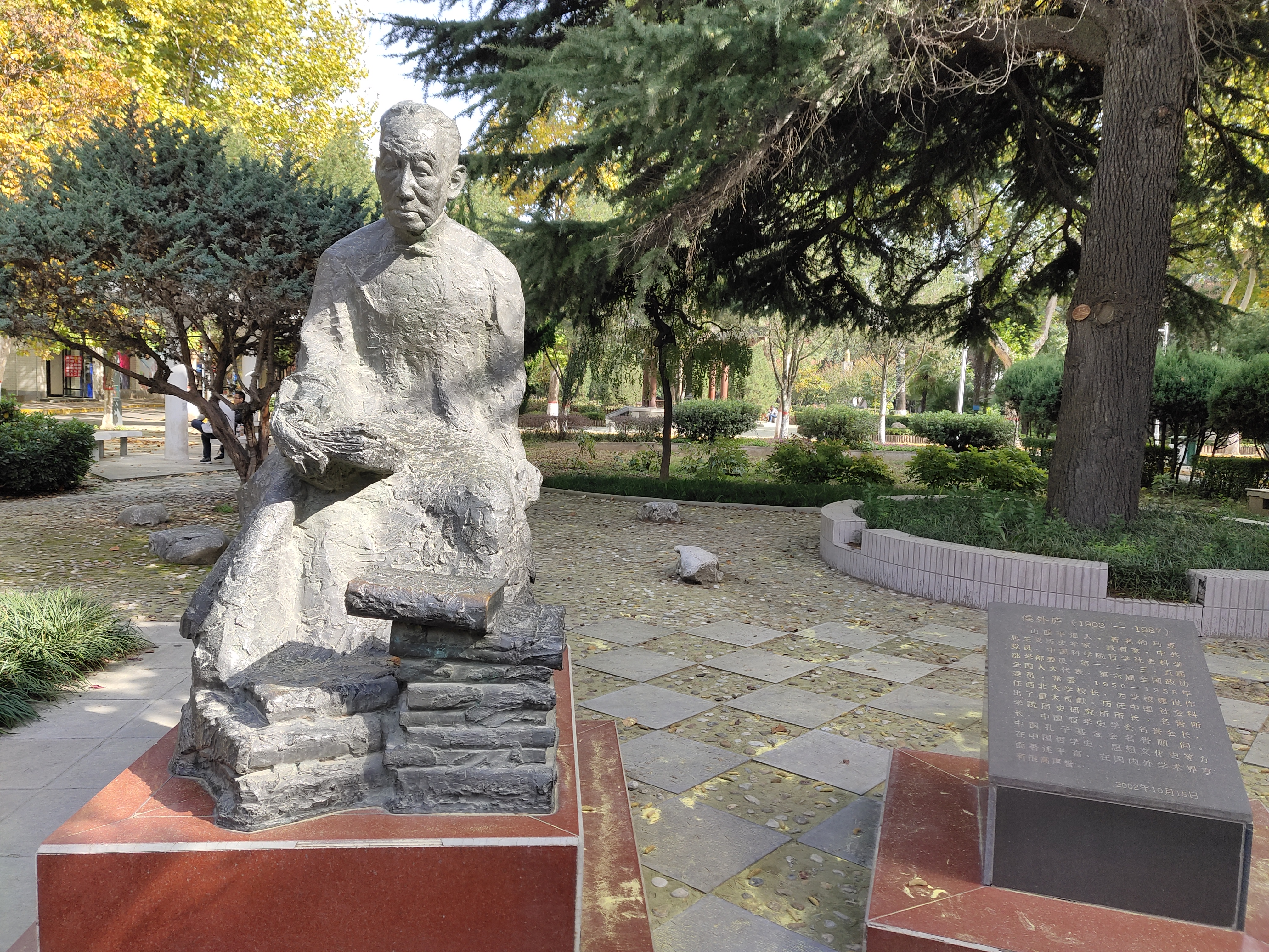 参观讲解侯外庐塑像