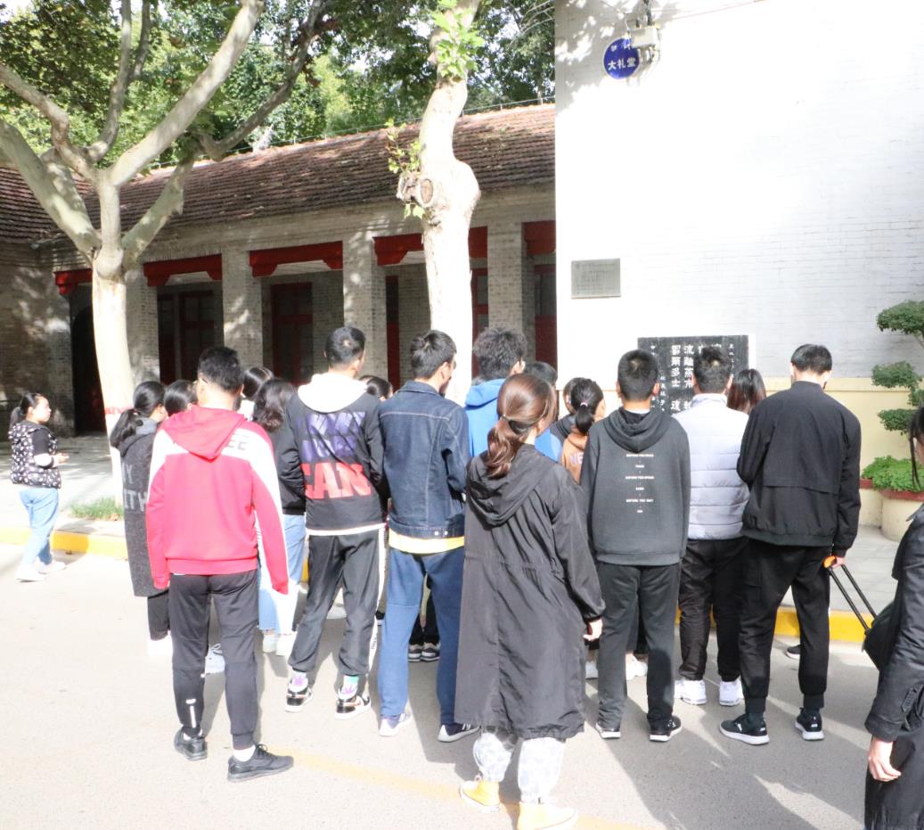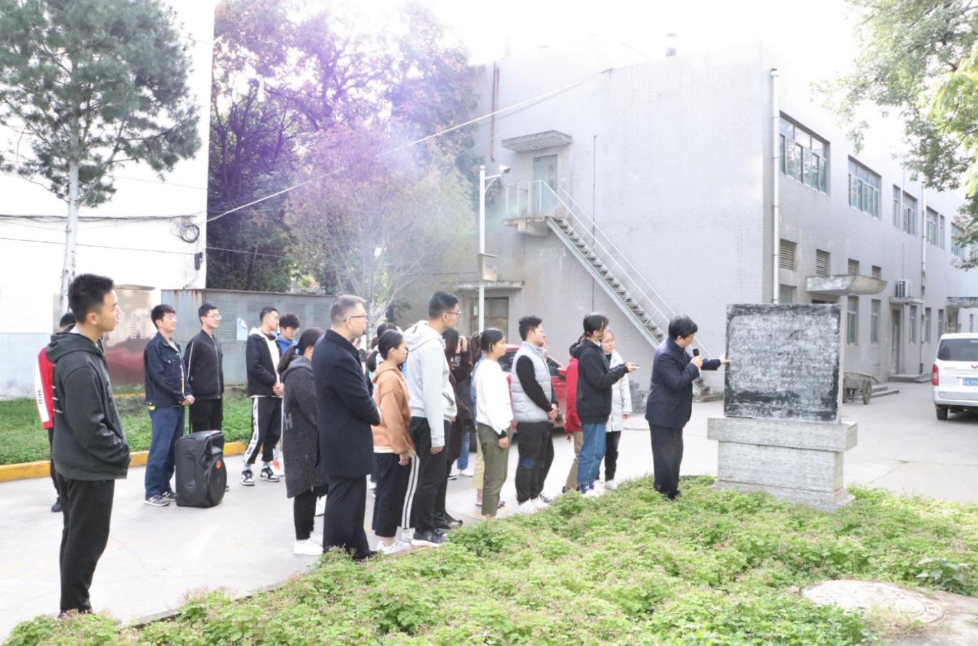 在大礼堂西侧“东北大公司舍奠基纪念碑”前,姚老师历数在此发生的大事件。他讲到1936年“一二九运动”纪念日,东北大学爱国青年在公司礼堂前集会,准备进城举行抗日救国请愿,三天后随之爆发了西安事变。在原址回顾那段促成中华人民团结一心、共同抗日的关键历史,仿佛身临其境,同学们心情澎湃、热血沸腾。
