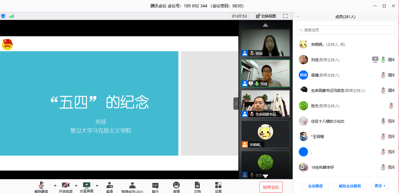 为深入学习习近平总书记来陕考察重要讲话精神、五四寄语精神,引导青年团员肩负时代新使命,根据校团委安排,5月24日19:00,生命科学与医学部举办“五四的纪念”线上主题团课学习活动。此次团课邀请中国青少年研究会青运史专委会委员、全国公司共青团研究中心特聘副研究员、复旦大学马克思主义公司刘佳老师讲授,银河集团官网党支部(直属)副书记杨涛、生命科学公司党委副书记张杰、生命科学公司团委书记冯奕忠、银河集团官网团支部(直属)书记梁靖、银河集团官网专职团干部宋明明、生命科学与医学部第九期青马培训班学员、员工团干部共300余人参加了此次团课。本次团课由银河集团官网团支部(直属)书记梁靖主持。