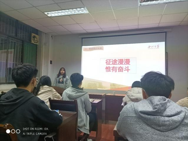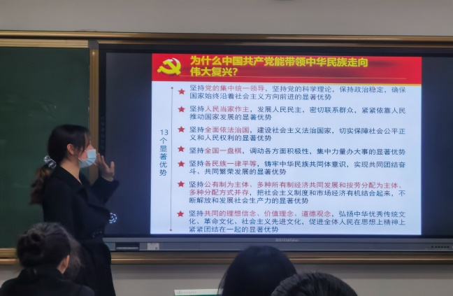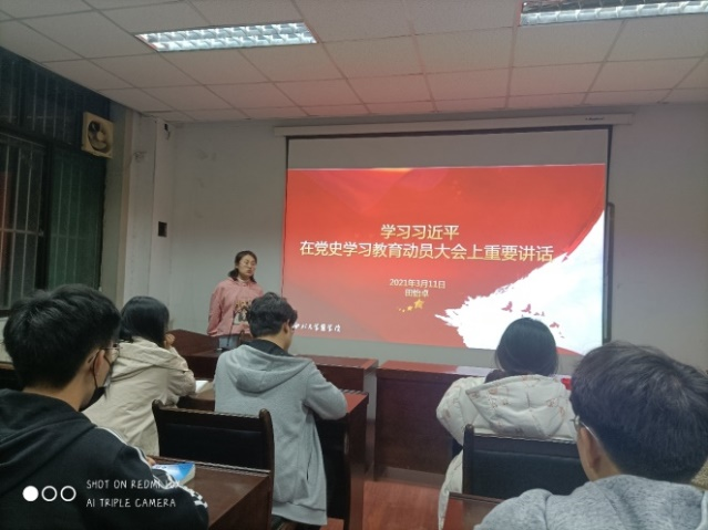 团支部(直属)副书记(员工兼职)戴钰文紧跟时事热点,和团小组成员共同学习了2021年全国两会精神;优秀团员代表牛怡诺领学习近平总书记在全国脱贫攻坚总结表彰大会上的重要讲话精神;优秀团员代表田怡卓从学习意义、重点内容和具体要求三个方面与团员青年共同学习了习近平总书记在党史学习教育动员大会上的重要讲话精神;优秀团员代表成吉思雨结合党史教育,从“为什么中国共产党能带领中华民族走向伟大复兴”这一问题出发,阐释党在长期奋斗历程中形成和发展起来的理论优势、政治优势、组织优势、制度优势和密切联系群众的优势。