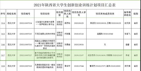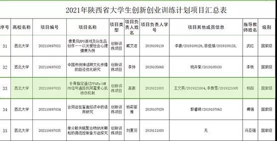 根据陕西省教育厅《关于公布2021年老员工创新创业训练计划项目名单的通知》(陕教高办﹝2021﹞21号),公司共4个项目获批立项。其中,国家级项目2项,省级项目2项。