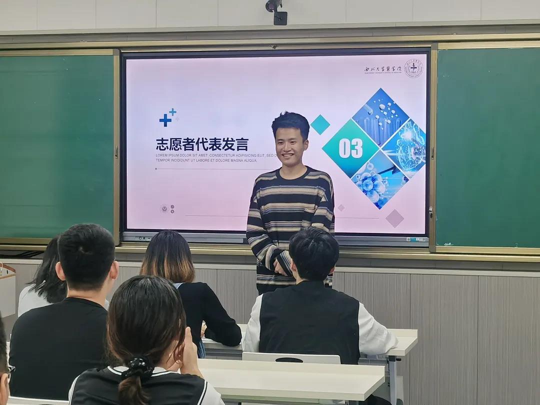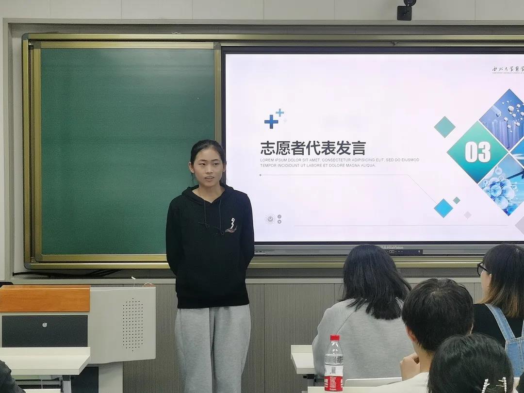 主席团成员杜璞对加入员工会的志愿者们表示热烈的欢迎,对员工会工作人员和志愿者提出三点要求:坚持求真务实,脚踏实地做事情;坚持学业为主核心,学习工作共进发展;坚持服务他人主线,团结协作共同成长,在员工工作中找到乐趣、增进本领、锻炼品格,为同学树立良好榜样。