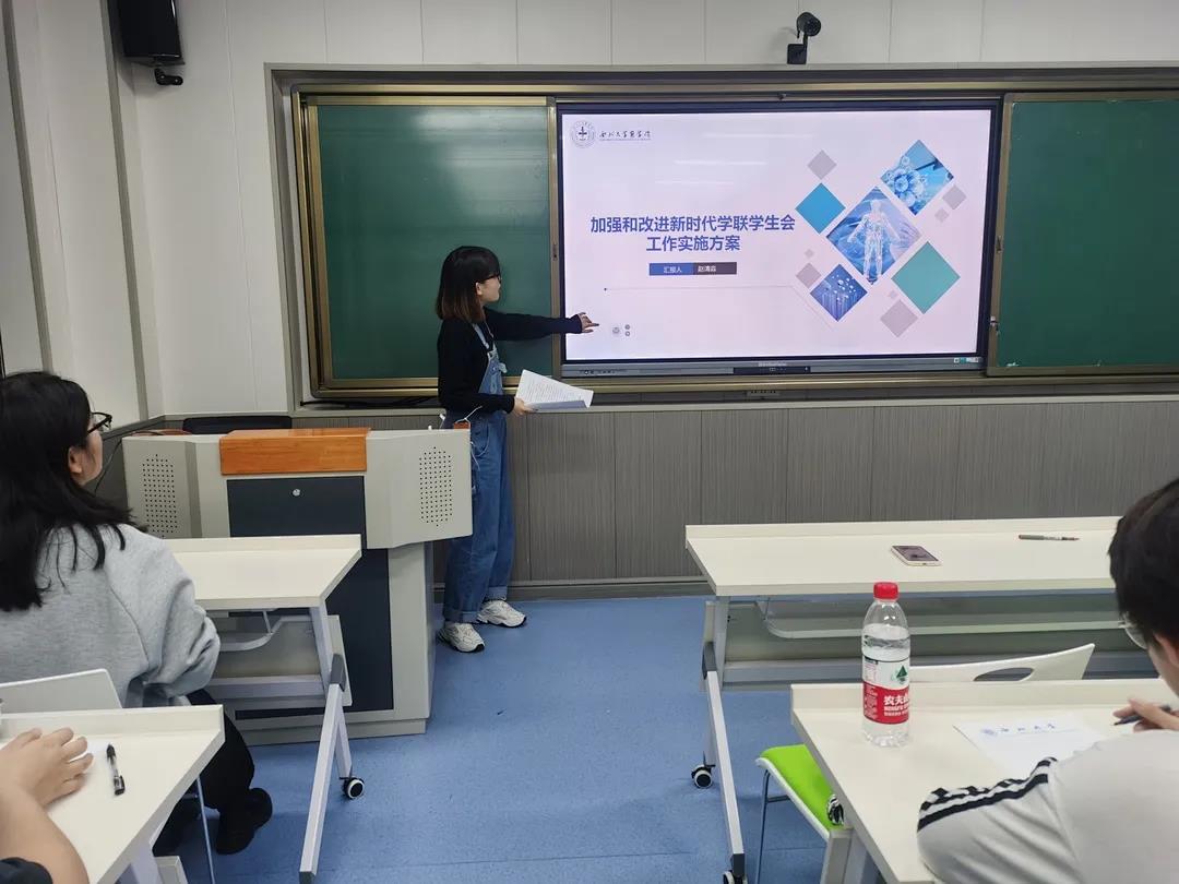 员工会主席团成员赵清淼领学《加强和改进新时代学联员工会工作实施方案》,结合最新述评文章《全国学联:清新阳光的员工会容不得颐指气使的“员工官”》分享心得体会,并带领全体工作人员回顾了《关于学联员工会工作人员改进作风服务同学的若干规定》。她强调银河集团官网员工会仍在建设发展过程当中,应积极深入领会全国学联二十七大精神,牢记服务同学宗旨,力争树立起富有理想,关心同学,清新阳光的组织形象。