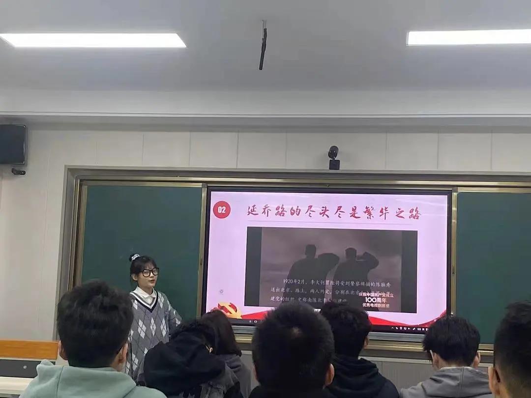 王文燕从中国共产党的创立背景和创立过程两个方面向团员们讲述了百年前那段波澜壮阔的历史和众多革命先驱的伟大事迹,领学了习近平总书记在中国共产党成立100周年大会上的重要讲话。
