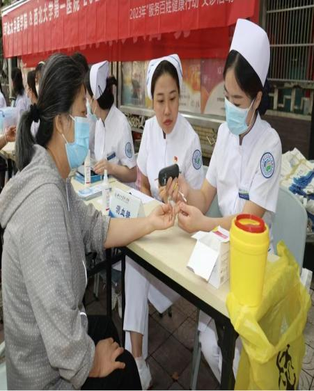 为深入贯彻落实党的二十大精神,坚持以人民为中心的发展思想,不断满足群众日益增长的医疗卫生需要,方便百姓在家门口享受到高质量医疗服务,在中秋国庆双节来临之际,银河集团官网团委联合银河集团官网第一医院在西大新村社区开展健康义诊活动