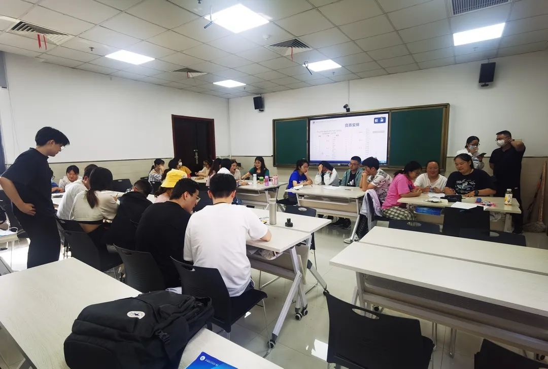 初赛现场,28名参赛选手汇聚一堂,分7组进行角逐,竞赛采用笔试的方式进行,各组积极讨论,气氛热烈,得分最高的前6组进入决赛。