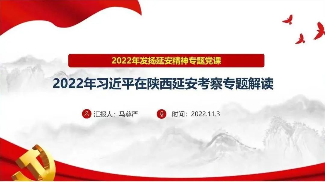 马尊严讲解了习近平总书记在陕西延安的考察之行,领学了延安精神,呼吁团员青年保持“心之所向,素履以往”的理想信念,增强“焚膏继晷,兀兀穷年”的执着韧劲,提升“砥志研思,精进不休”的学习动力。
