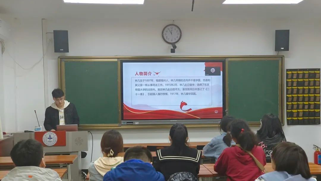 杜令琛讲述了我国现代法医学奠基人--林几先生的一生,回顾了我国法医学的发展,从人物生平、主要事迹、成就贡献三方面带领团员们学习了林几先生的先进事迹。