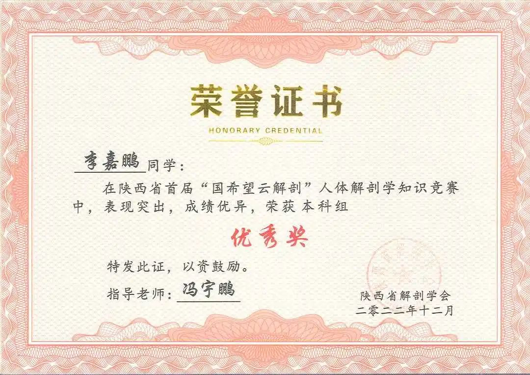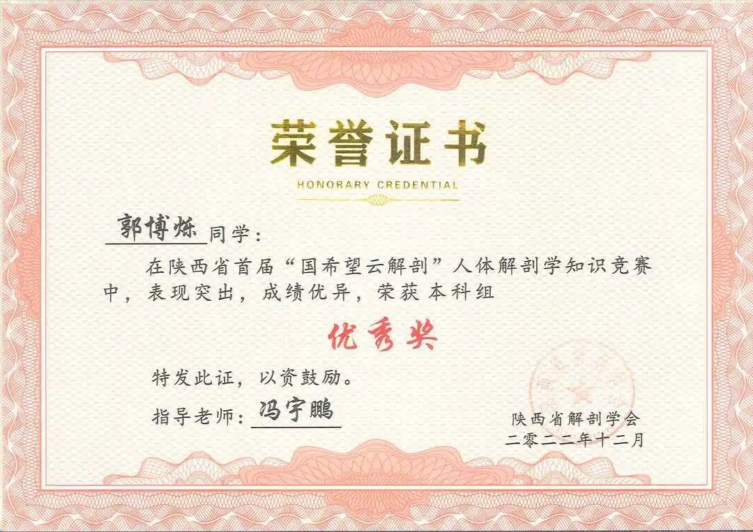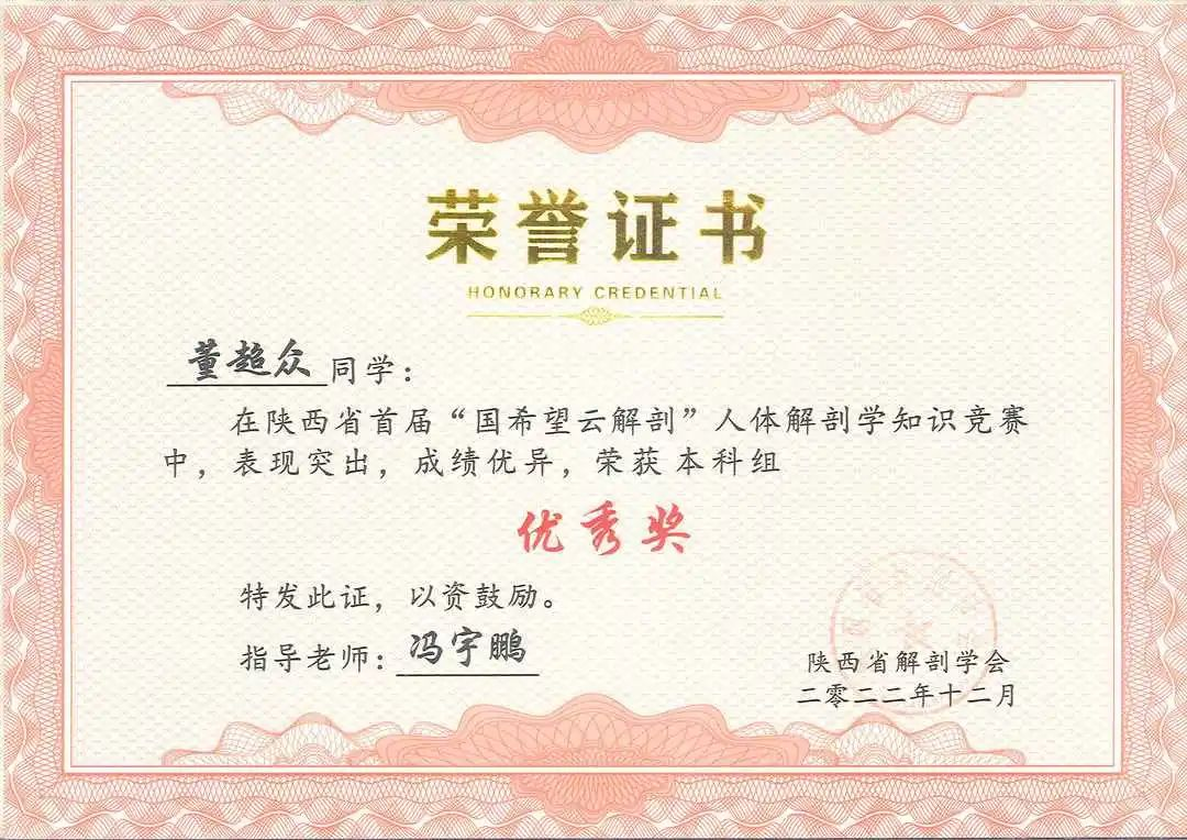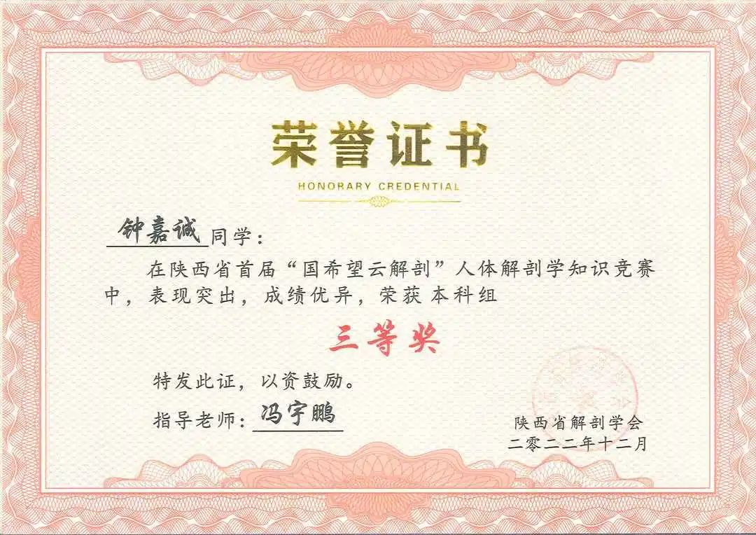 为引导公司医员工重视和热爱人体解剖学,提高员工学习人体解剖学的积极性和主动性,2022年12月27日,公司2021级、2022级共50名本科生参加了陕西省首届“云解剖”人体解剖学知识竞赛,斩获一等奖1项,二等奖2项,三等奖3项,优秀奖7项,同时取得了团体第二名的好成绩!