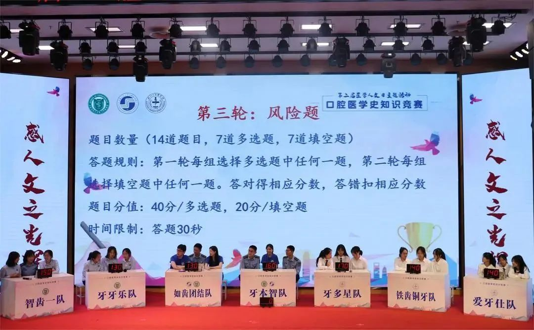 为加强学科自信、厚植优秀历史文化,加强校际交流合作,提升口腔医员工人文素养,引导口腔医员工重视并热爱口腔医学发展史的学习,提高医员工学习的积极性和主动性,公司受邀参加由空军军医大学主办,上海交通大学和公司共同参与的口腔医学人文日主题活动——口腔医学史知识竞赛。