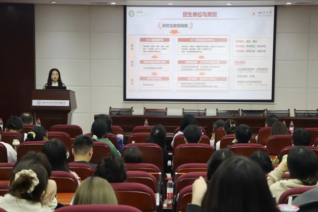参会同学对宣讲内容兴趣浓厚、现场气氛热烈,员工代表围绕招生政策、科研平台等方面与宣讲老师展开深入的交流。各位老师对同学们提出的问题给予耐心解答,并热忱欢迎同学们积极报考四川大学华西医院。