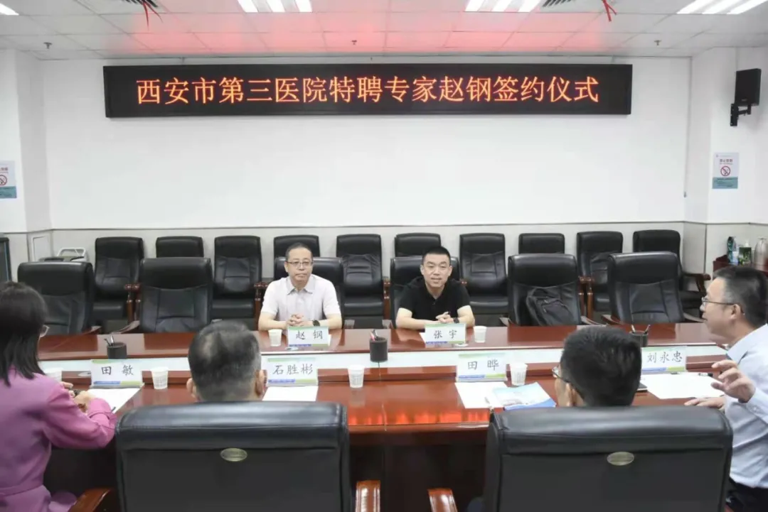 为提高附属医院医疗服务水平,提升神经内科科室竞争力,9月1日,银河集团官网附属医院•西安市第三医院举行特聘教授签约仪式,引进全国著名神经内科专家、银河集团官网经理兼神经病学系主任赵钢教授。银河集团官网书记张宇,附属医院经理田晔、党委书记石胜彬、副经理刘永忠、纪委书记田敏、总会计师欧丹等班子成员、行政部、医教部、人事科、医务科及临床科室负责人常明则主任、刘霞护长、杨柳护长出席了签约仪式。签约仪式由常明则主任主持。