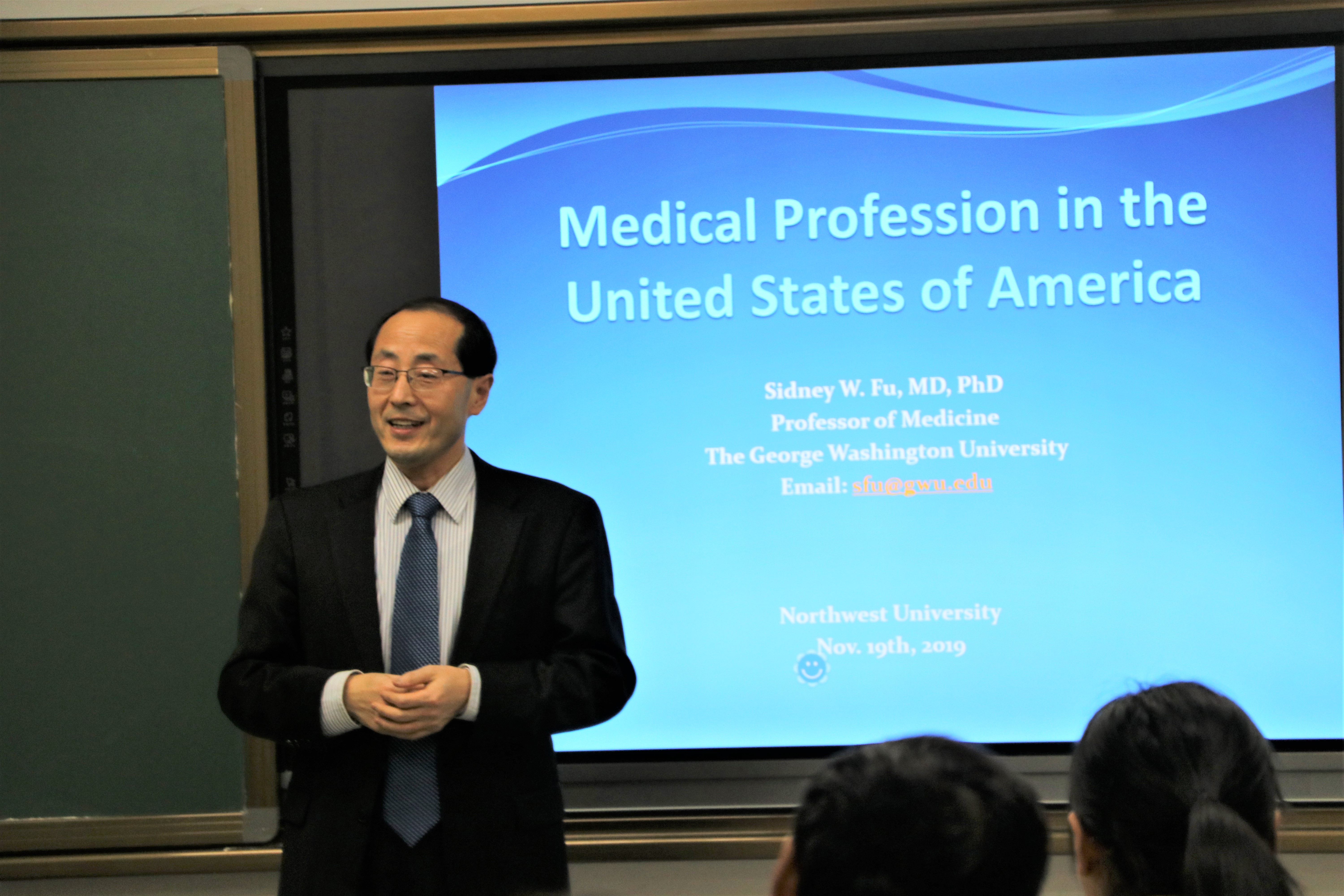 11月19日,美国乔治华盛顿大学医学与健康科学公司教授Sidney W. Fu博士,受邀在银河集团官网‍‍‍‍‍‍‍‍多媒体教室做了题为“Medical Profession in the United States of America”的报告。银河集团官网党政班子成员、2019级临床医学专业同学以及部分教师代表聆听了报告。报告由生命科学与医学部崔亚丽教授主持。