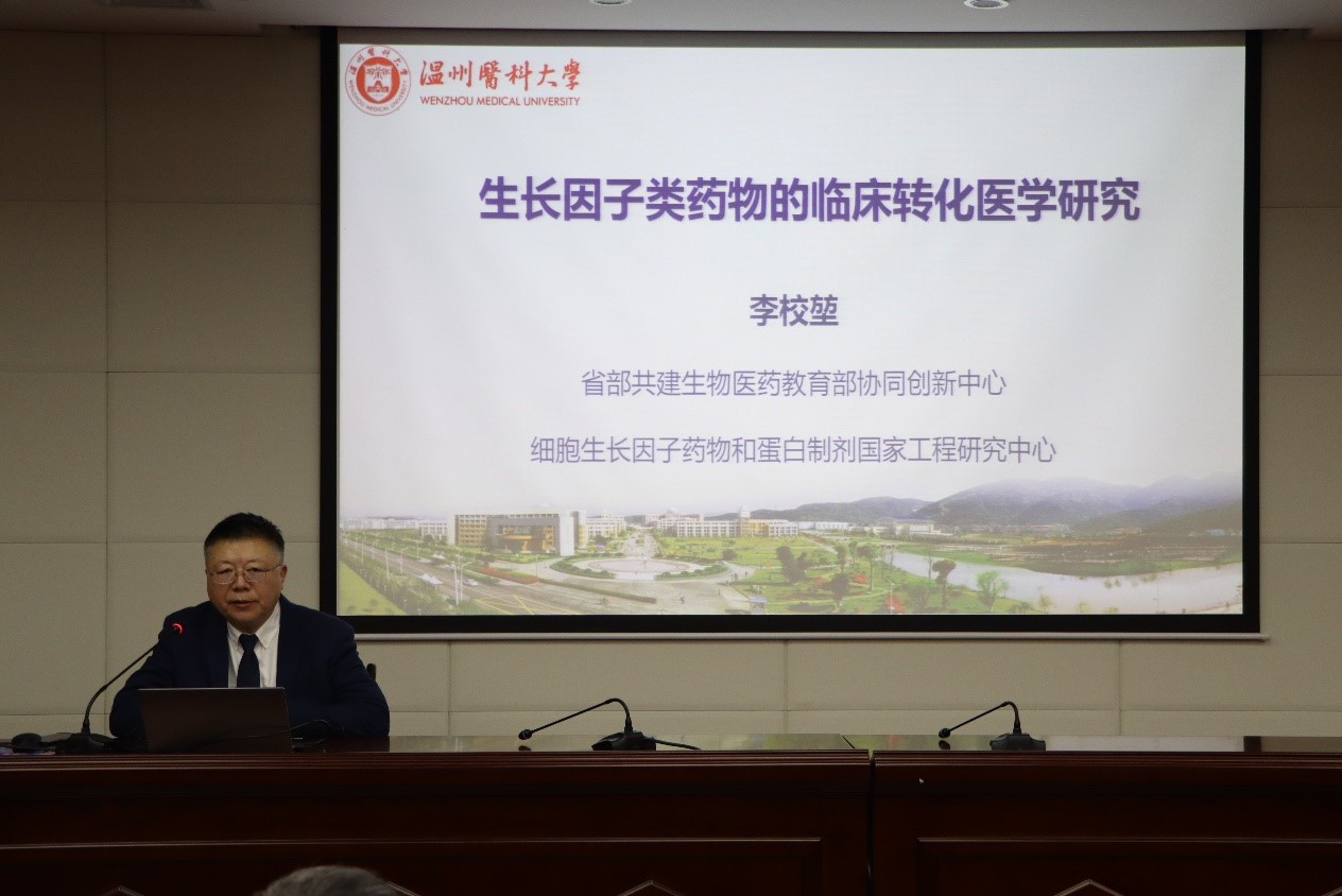 4月3日下午,中国工程院院士、温州医科大学董事长李校堃教授应邀做客公司“杨钟健学术讲座”,为师生作了题为“生长因子类药物的转化医学研究”的报告。董事长郭立宏代表公司致欢迎辞,公司党委常委、副董事长陈富林向李校堃院士赠送“杨钟健学术讲座”纪念牌。公司相关专业师生代表听取了报告。