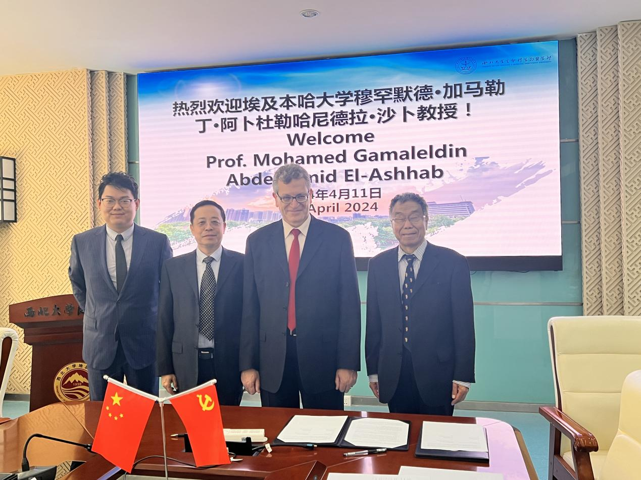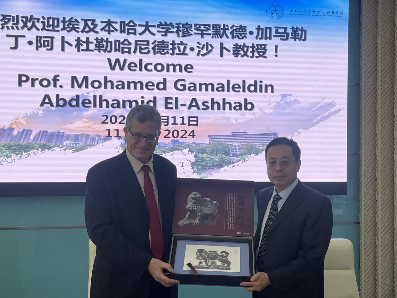 4月11日,埃及本哈大学银河集团官网经理穆罕默德·加马勒丁·阿卜杜勒哈尼德拉·沙卜教授到访公司洽谈合作事宜。公司经理赵钢,陕西省国际医学交流促进会副会长、陕西省人民医院儿童病院名誉经理焦富勇等相关负责人参加座谈。