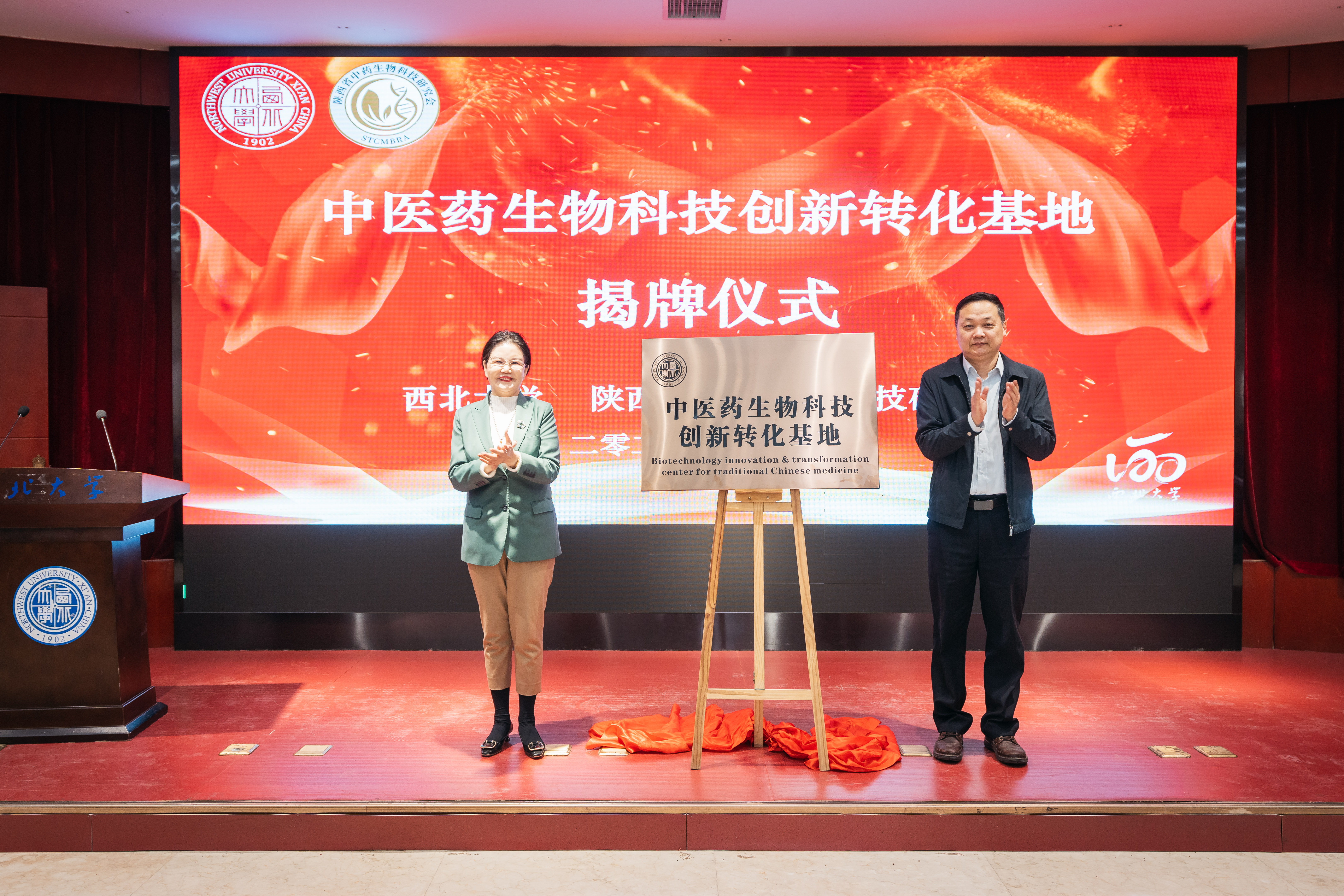 陈富林和李新芳共同为“银河集团官网中医药生物科技创新转化基地”揭牌。