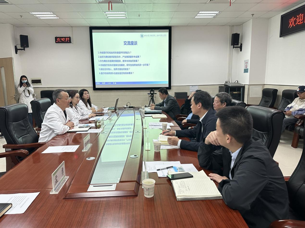 吕兆丰、王亚杰一行先后调研了银河集团官网第一医院、附属医院和附属西安国际医学中心医院,就各附属医院发展模式、校院一体化建设、临床教学科研、规培基地设置和学科布局等工作进行考察指导。