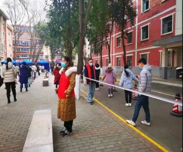 “岂曰无衣,与子同袍”他们,虽无白衣附体,却依是人间天使召集志愿者,他们便应声而和,积极响应红色的志愿服有如冬日烈阳,又似黑夜里冲天而起的光亮。在他们的组织和协助下,核酸检测的艰巨任务变得有序而温馨“五号楼的同学下楼做核酸喽”“核酸时间很短,大家尽快排队”“请大家排成三路纵队”“注意保持一米五间距”…………数九寒冬里,他们的呼喊那么有爱而温暖是他们躬身入局,奋不顾身为你我散尽寒冬,迎来星河长明。为了保护同学们的安全,降低感染风险志愿者们不顾疲累,亲自指引员工有序排队一遍又一遍叮嘱同学们保持一米五的间隔距离。同学们不能堂食,宿舍只有一人可定点外出带饭志愿者们贴心地为同学们发放手提袋和口罩在寒冬里给困囿一室的同学们送去温暖与祝福。