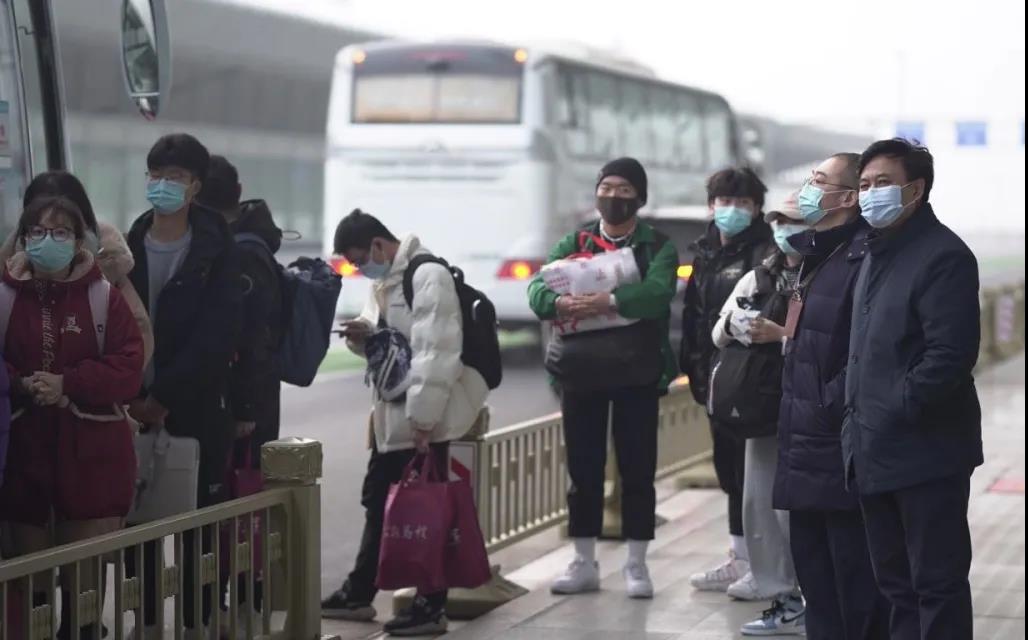 保卫处党员志愿者张宝泰、生命科学与医学部党员志愿者张宇、梁靖、化工公司党员志愿者王向旭、员工处党员志愿者米鑫、地质学系党员志愿者李政伦护送51名返家学子前往两站一场。