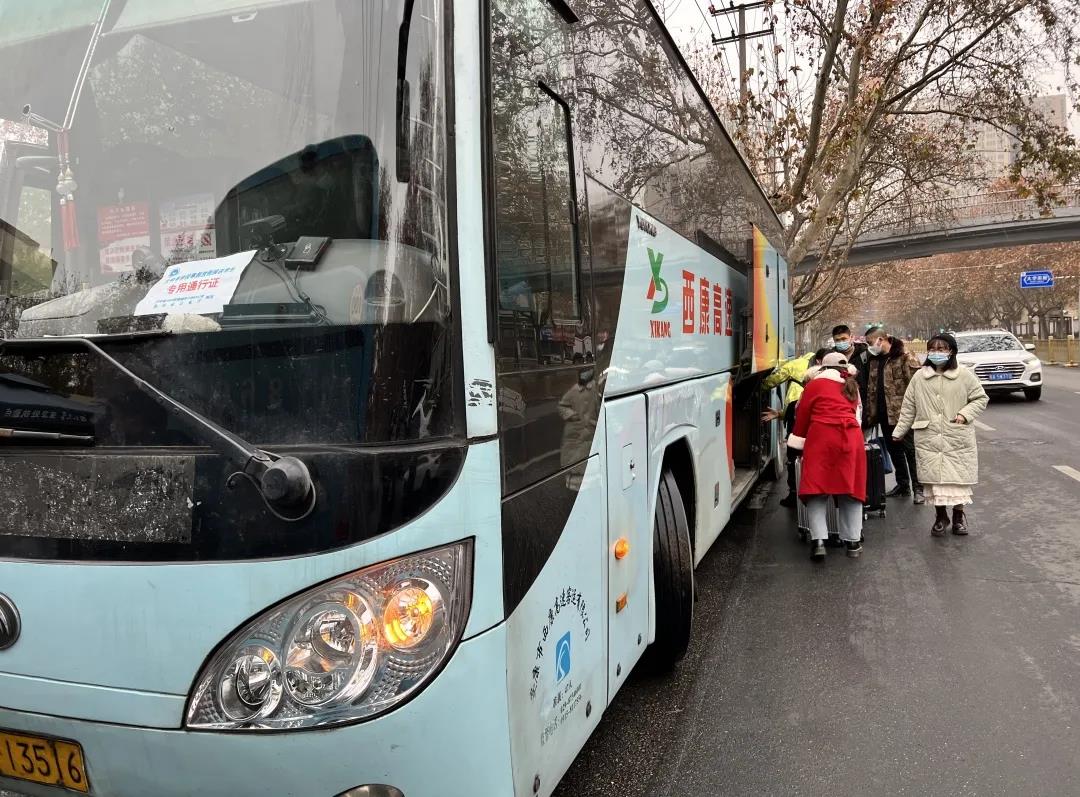 公司党委书记王亚杰、副董事长常江登上送站大巴,和返家员工一起前往西安北站。公司党委副书记张清继续带领全体工作人员统计数据核查人数,有序组织员工排队上车,点对点运送员工直达两站一场。