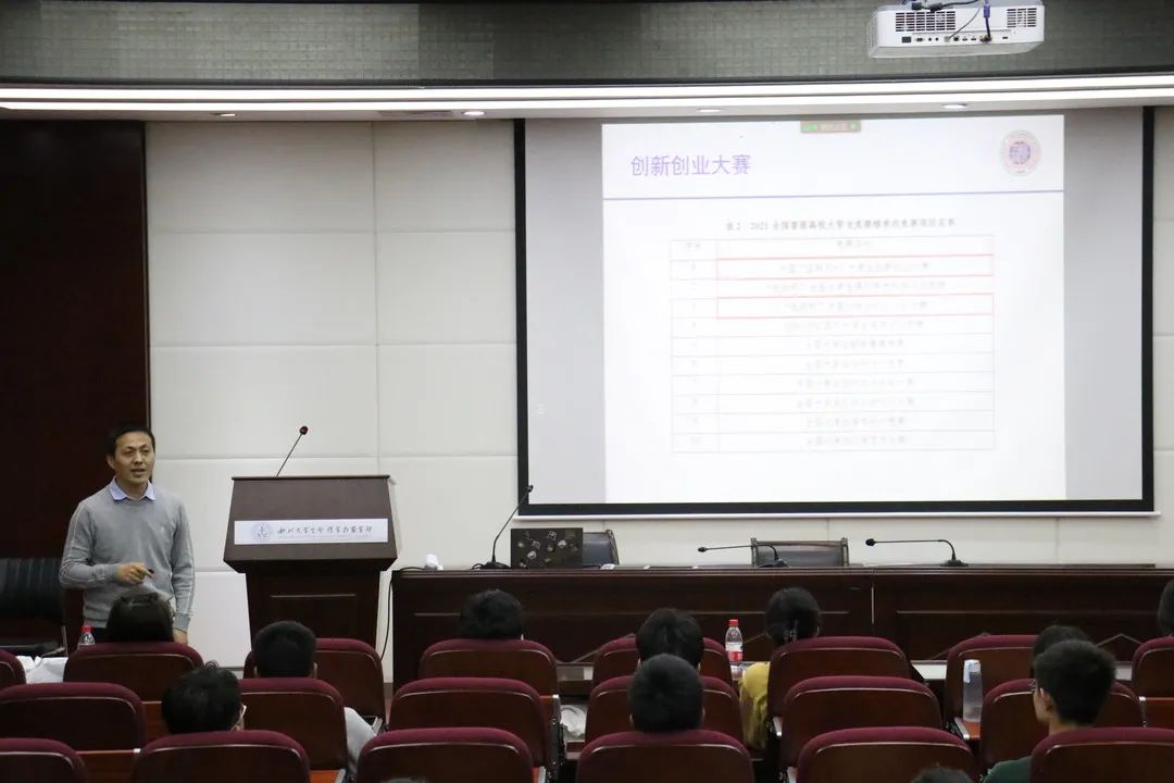 赵军龙教授以导师的角度阐述了自身对于创新创业大赛的理解,并以生动形象的表达方式,激发了同学们对于追求创新思想的激情。赵军龙教授以曾指导的国家级、省级老员工创新创业项目,省级“挑战杯”老员工创业计划,“互联网+”老员工创新创业优秀团队为例,分享了丰富而充满收获的参赛历程,鼓励同学们创新创业大赛是一次模拟赛,要敢于尝试,在参赛过程中要不断增强对国情社情的了解,将医学专业知识与经济社会发展紧密结合,持续提高创新、创意、创造、创业的意识和能力。