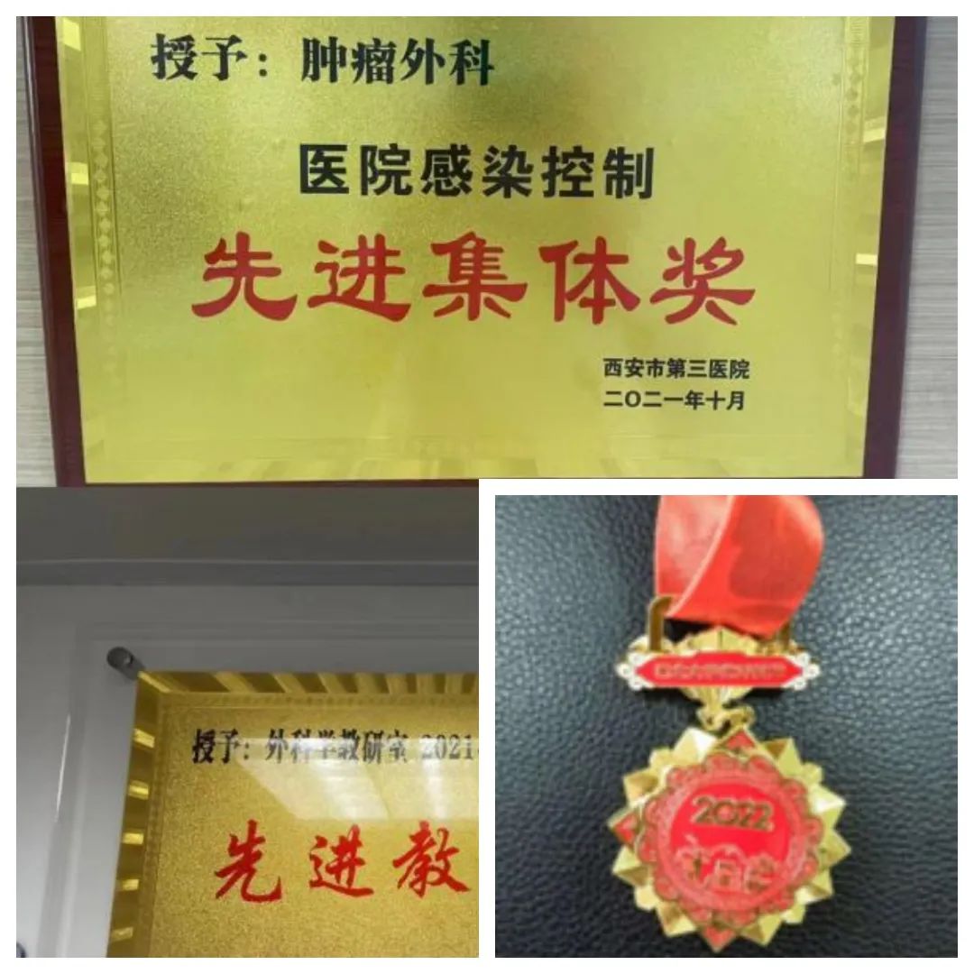 肿瘤外科两年的发展路,一路开拓,一路奋进,些许收获,科主任孟勇获得“银河集团官网优秀教师”荣誉称号,科室获得“医院感染控制先进集体”荣誉称号,外科教研室获得“先进教研室”荣誉称号,护理组获得“优秀带教科室”荣誉称号!