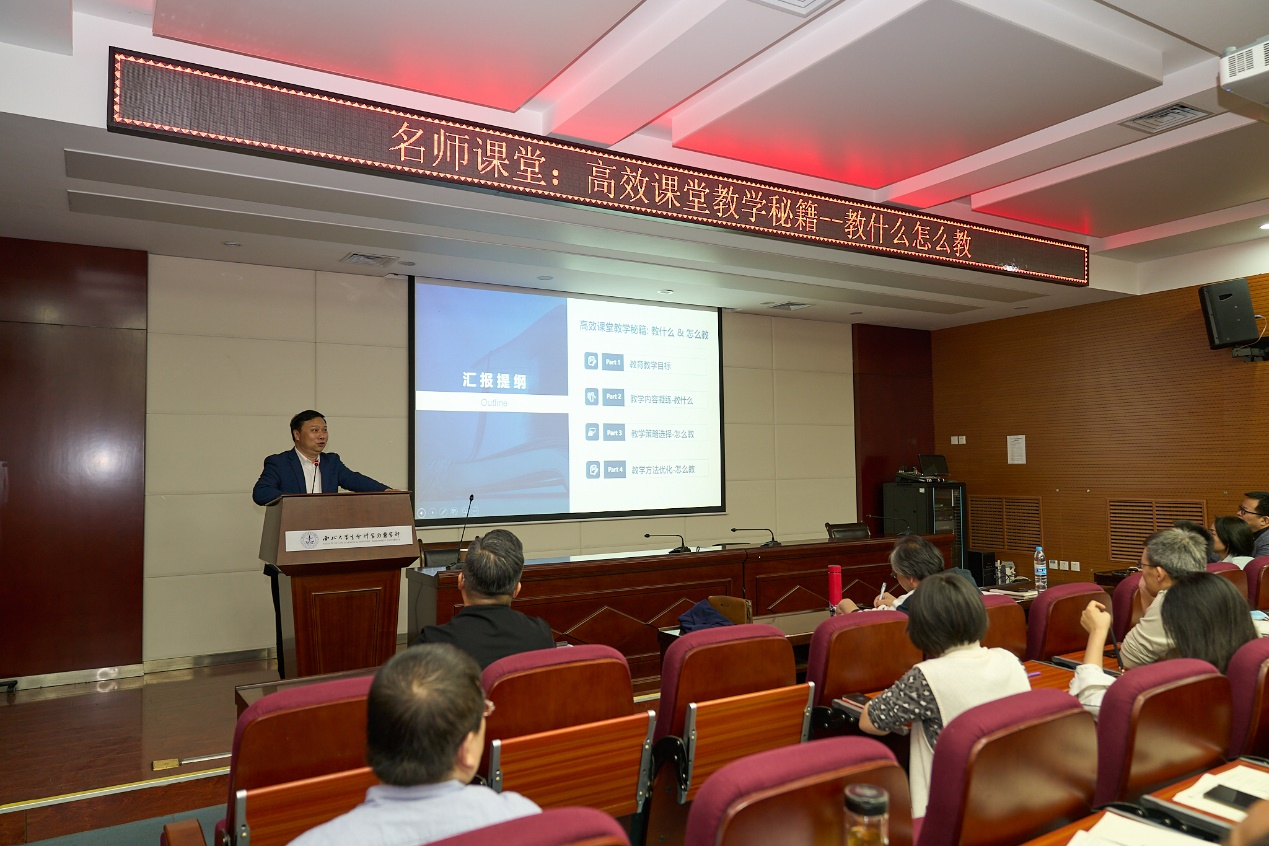 赖绍聪以“高效课堂教学秘籍:教什么怎么教”为题,围绕公司产品的目标、教学内容的凝练、教学策略的选择、教学方法的优化等四个方面与在座教师分享了他40余年的从教经验。他首先阐述了基于建构主义的当代教育理论,教育的本质是立人教育,教育的目的是促进员工的学习、提升员工的能力、促进员工的身心发展,教师的职责是教知识、教能力、教智慧、教品德。他指出,要紧紧围绕知识目标、能力目标、情感目标,凝练教学核心内容,依据知识逻辑和员工心里逻辑对课堂教学精心设计,建构“自主型课程学习”的A型课堂教学(Autonomous course study),实现员工从“要我学”向“我要学、我想学、我会学”的转变。他强调,高校教师要在教学过程中应扮演好“向导”角色,要精心对待每一堂课程,将自身对学科知识体系的感悟与思考融入教学,激发员工探究问题、解决问题能力为导向的教学方法,培养员工的独立人格、探索精神、学习能力和践行能力,树立正确的人生观和价值观。赖教授用生动幽默的语言给学部教师上了一堂生动的示范课。