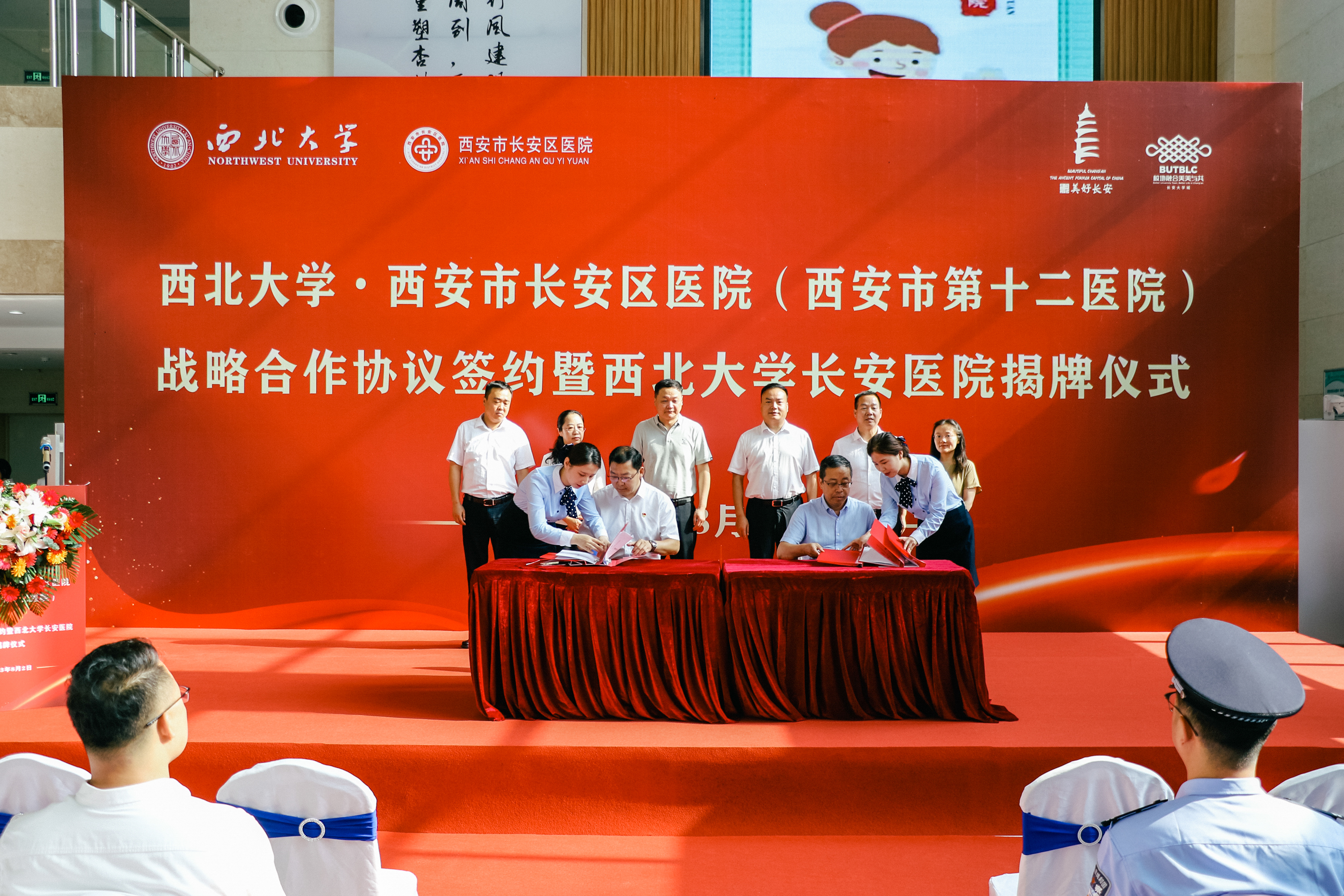 8月2日上午,“银河集团官网与西安市长安区医院战略合作协议签署暨银河集团官网长安医院揭牌仪式”在长安区医院隆重举行。长安区政府副区长杨永涛,公司党委常委、副董事长、生命科学与医学部主任陈富林,长安区卫生健康局党委书记、局长王晓丹,郭杜教育科技产业开发区党工委书记梅春满,郭杜街道党工委书记李明,校国内处、校医院、银河集团官网及长安区医院领导班子成员和医院职工代表参加活动。银河集团官网负责人、西安市长安区医院经理胡明军代表双方共同签订了《银河集团官网·长安区医院战略合作协议》。