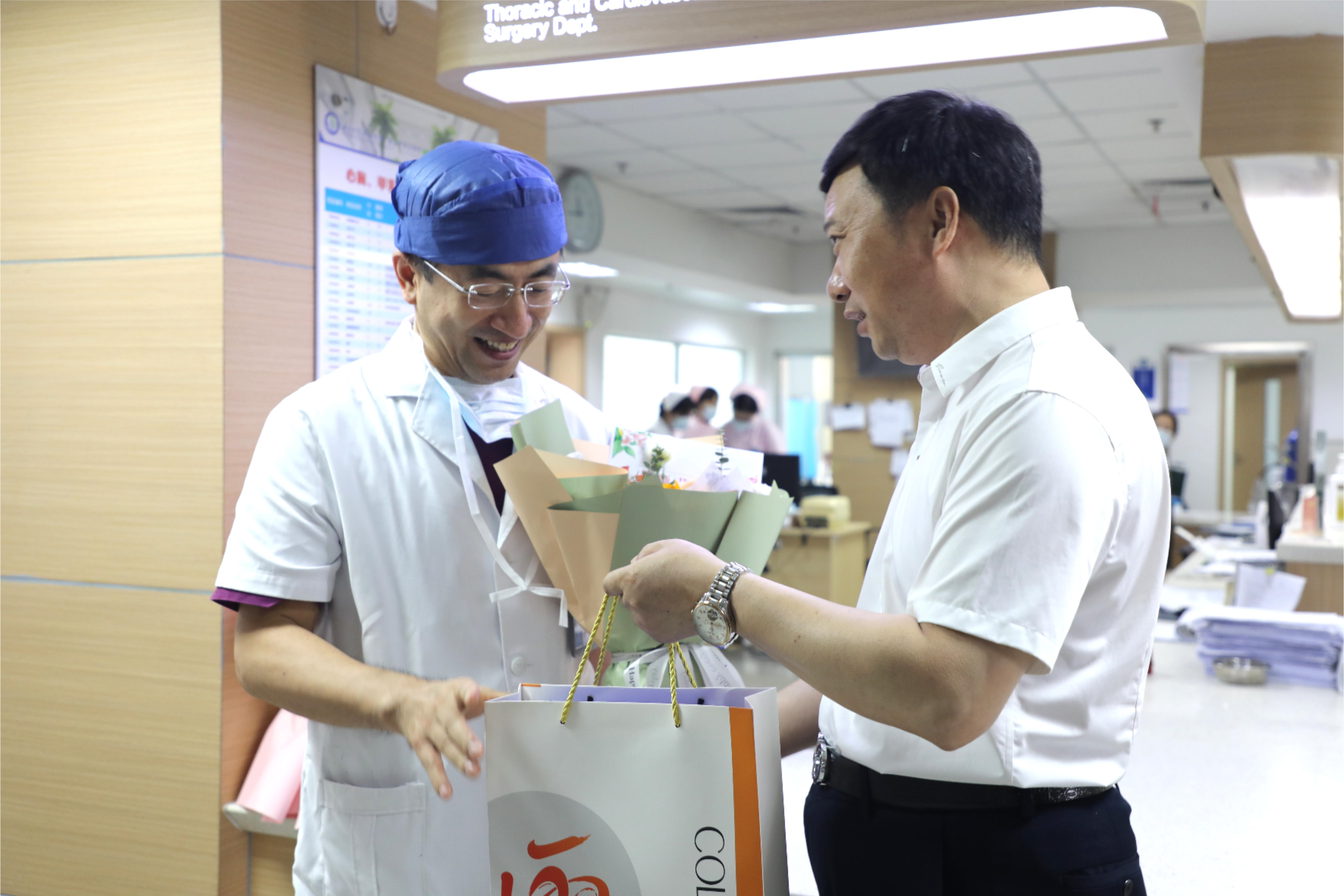 陈富林一行来到附属第一医院,向广大医务工作者致以节日慰问,对附属第一医院一直以来为公司教育事业做出的突出贡献表示崇高敬意和衷心感谢。