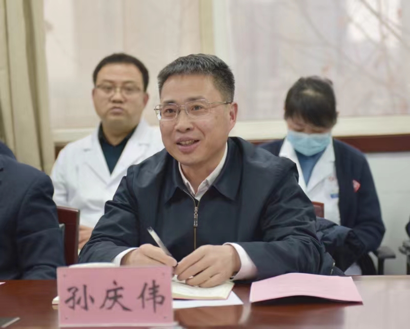 孙庆伟充分肯定了医务人员所付出的艰辛和努力,高度赞扬了一线医务人员恪尽职守、无私奉献、担当实干的高贵精神品质,并代表公司向医院教职工致以诚挚的问候和新春的祝福。他指出,深入各院(系)和相关职能部门、业务单位开展调研,与院(系)和相关单位领导班子成员、师生代表座谈交流,全面了解院(系)和相关领域建设情况,共谋事业发展,是落实公司第十四次党代会精神的具体举措。70年来第一医院由行业医院转变为社会医院再转变为大学附属医院,每一次更名,都承载着历史的变迁。他强调,要着力提升医院软件和硬件设施,不断夯实医院内涵,构建医教研三位一体协同发展。要融入大学,创建三甲医院,制定医院发展远景目标,为医院跨越式发展做好基础保障,真正实现名校名院。他要求,要结合清廉医院建设,深入开展全省医药领域腐败问题集中整治工作,营造风清气正的环境。