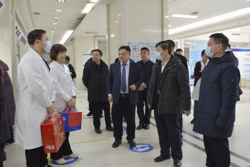 蒋林、孙庆伟一行先后来到医院急诊科、影像科、超声医学科、出入院一站式结算中心、监控室、肾病内科/老年病科、心内科,与一线医务人员亲切交谈、了解医院专科发展现状和临床诊疗工作情况并送上节日慰问,勉励大家在新的一年再接再厉、再立新功。
