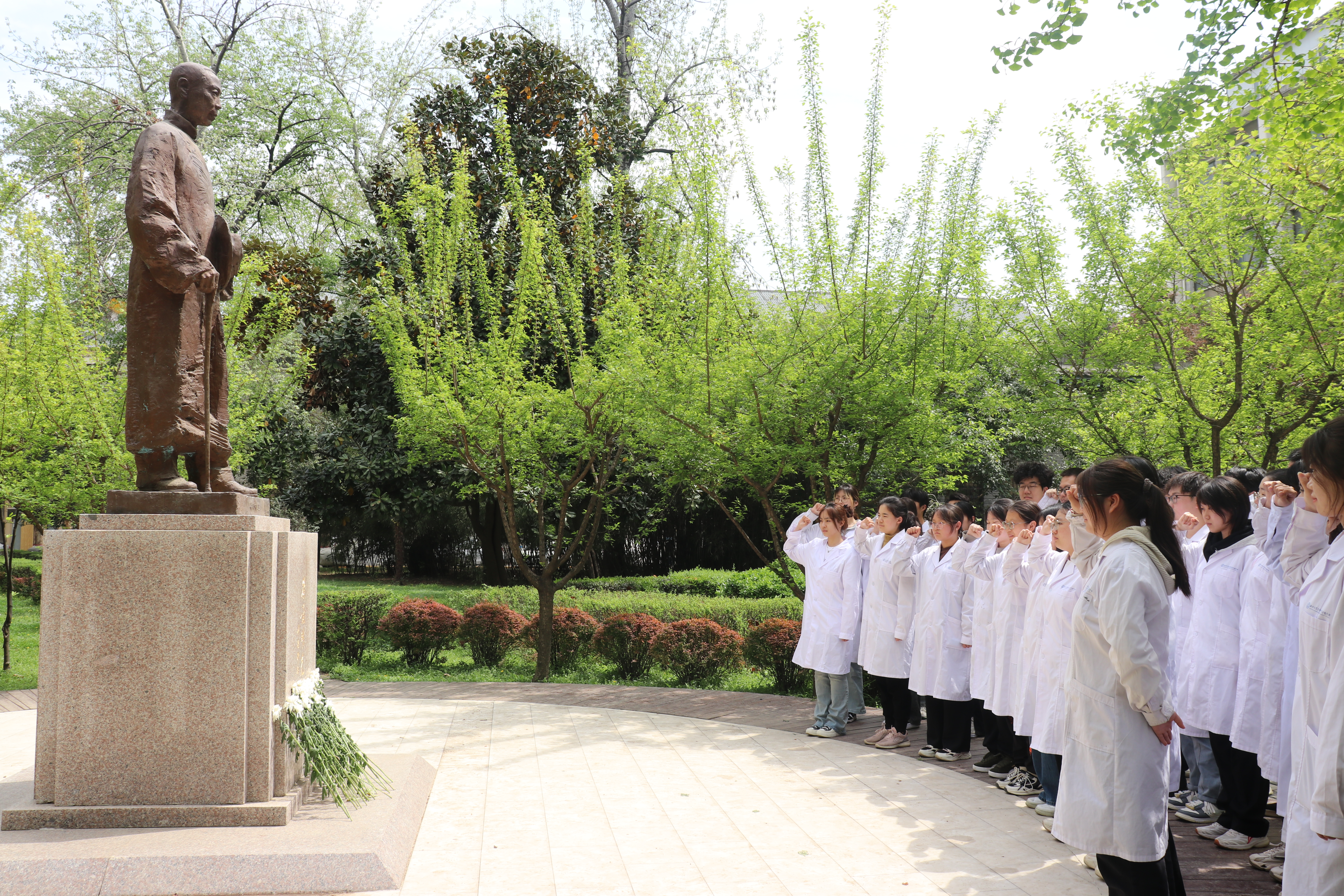 清明时节,小雨纷霏,全体师生心怀崇敬之情,向徐诵明先生敬献花束,鞠躬敬礼,向先生表达最深切的敬意。庄重肃穆的氛围让在场师生不禁想起当年医学先驱“医人救国、精诚济世”的传奇故事。