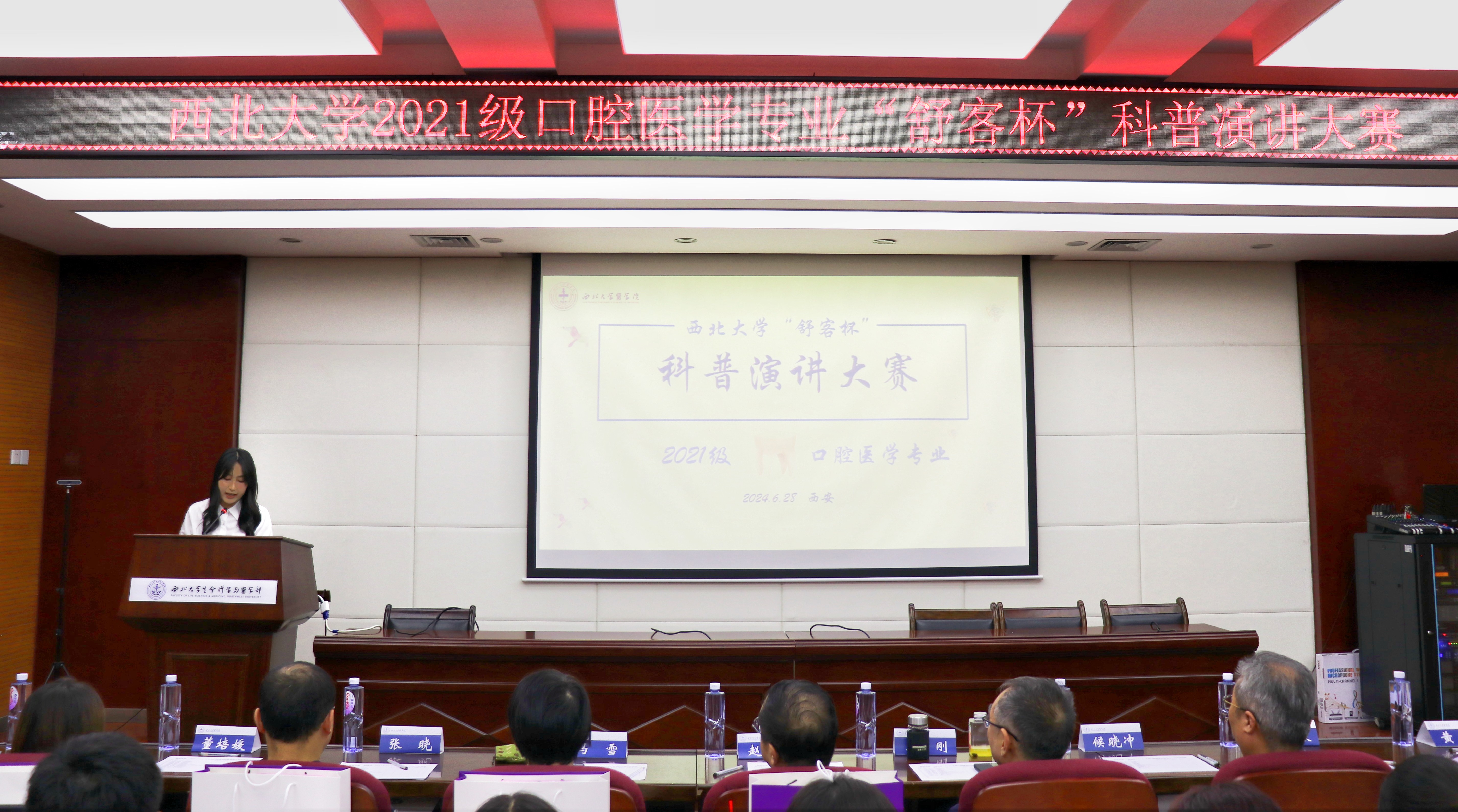 为提升口腔健康科普宣传能力,激发口腔医学学子学习兴趣,在实际行动中践行“医人报国,精诚济世”的院训精神,6月28日,银河集团官网成功举办首届“舒客杯”口腔医学科普演讲大赛。公司经理赵钢、口腔医学系主任冯雪、教授李刚、口腔医学教学中心主任侯晓冲、银河集团官网出版社编辑王银存以及口腔医学系教师黄睿、张晓、董培媛担任大赛评委,2021级口腔医学专业29名同学参与本次大赛。