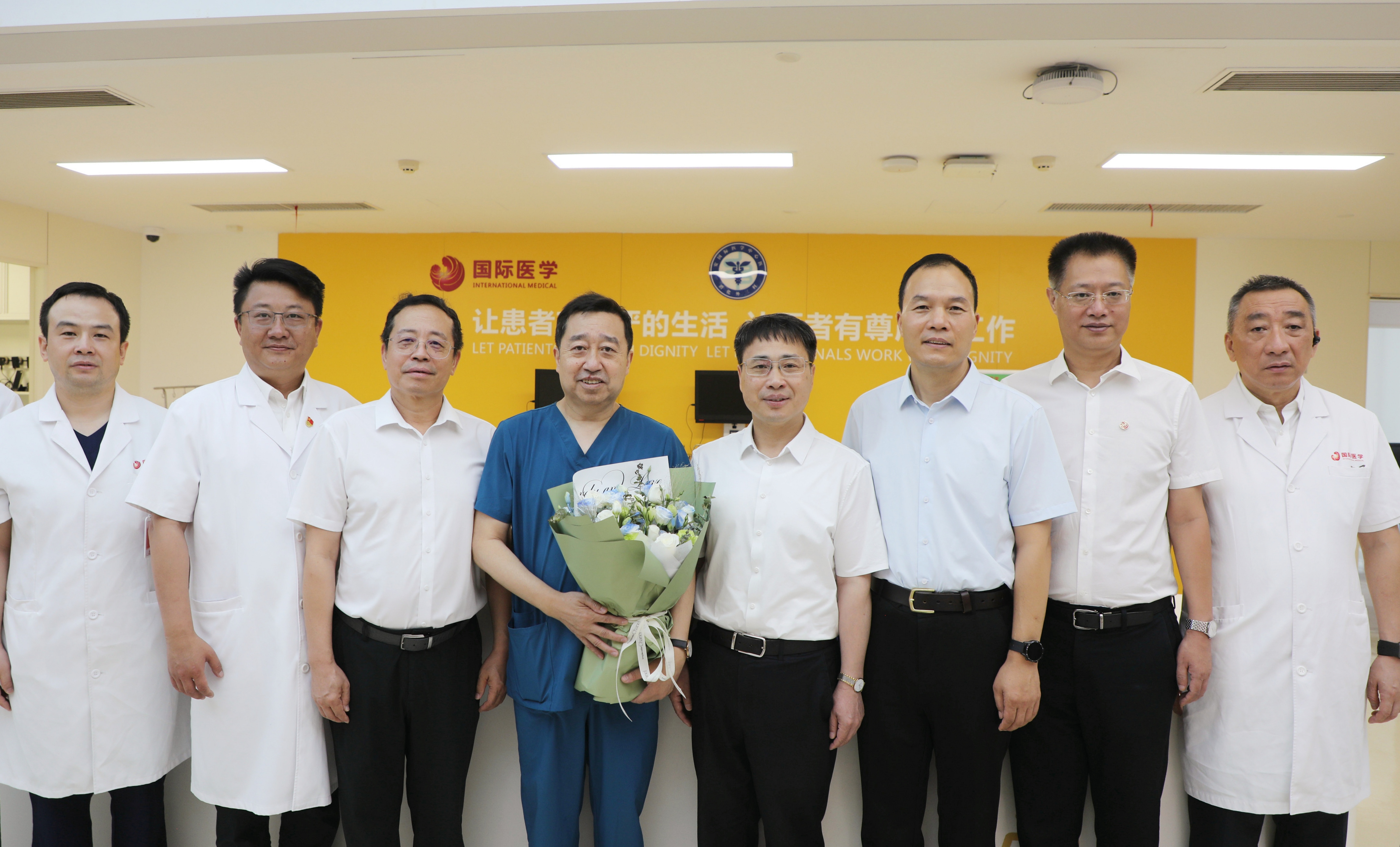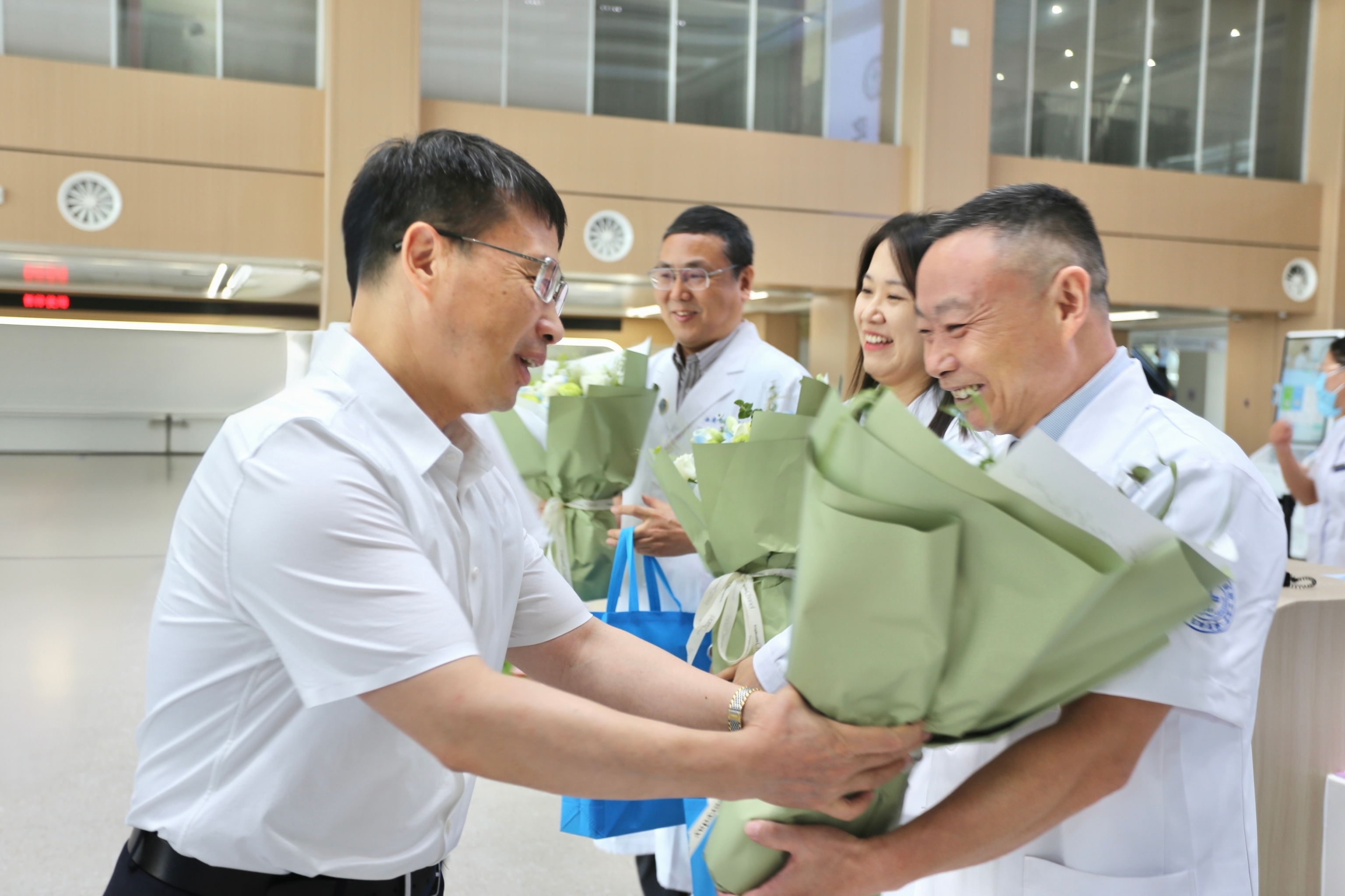 8月19日是第七个中国医师节,公司党委书记蒋林、董事长孙庆伟分赴附属人民医院、附属第一医院、附属医院、附属西安国际医学中心医院,走访慰问奋战在临床一线的医务工作者,向救死扶伤的医师致敬。公司党委副书记吕建荣,党委常委、副董事长陈富林,银河集团官网和各附属医院负责人陪同慰问。