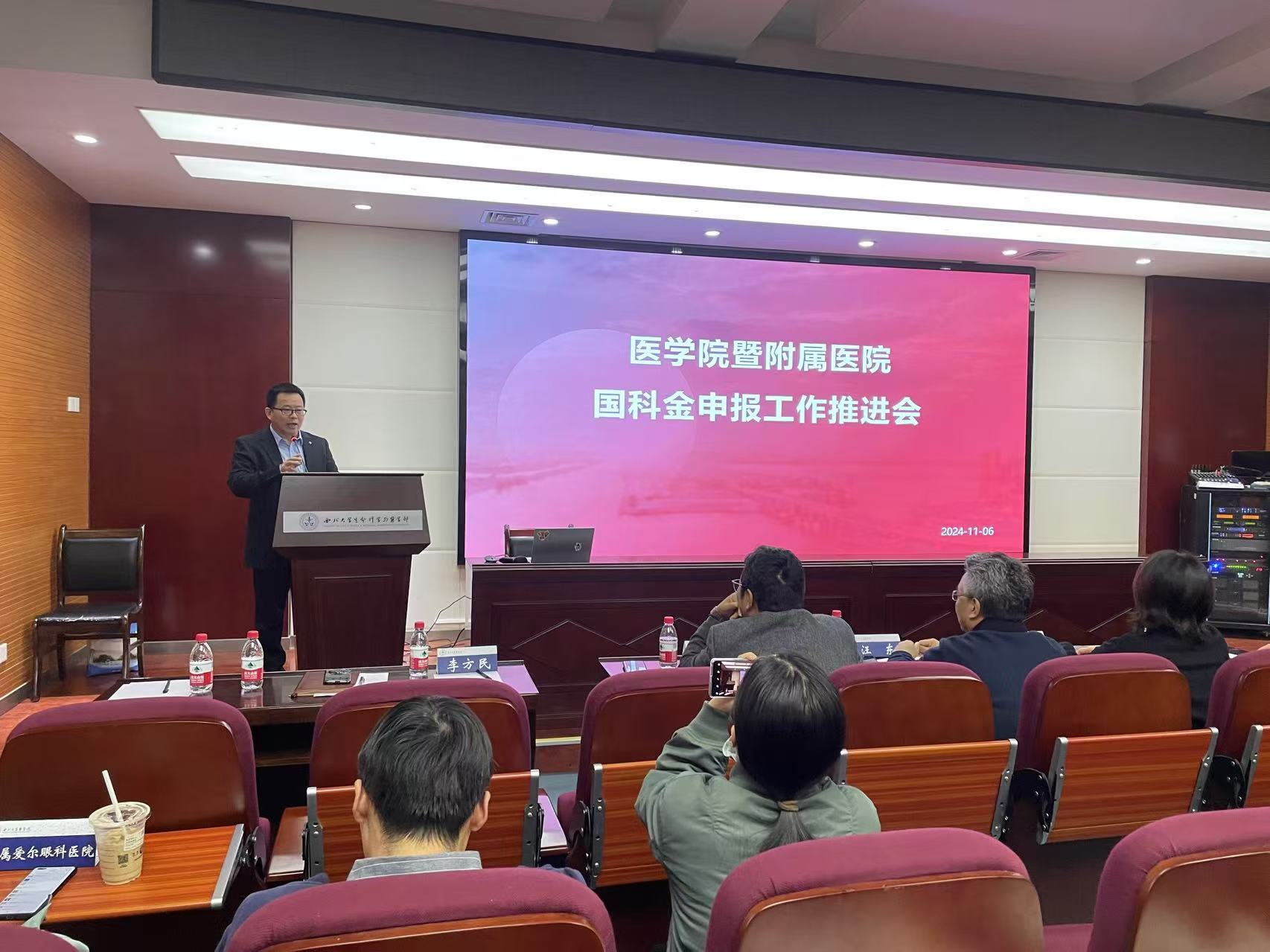 为推动2025年国家自然科学基金项目申报工作,银河集团官网于11月6日下午14:30,在太白校区博望报告厅举行了银河集团官网暨附属医院国家自然科学基金项目申报推进会,邀请生命科学与医学部教授赵新锋作基金申请书撰写经验报告、公司科技处项目科科长胡阳作基金申报政策解读报告,银河集团官网经理赵钢、附属医院副经理吕雅丽、附属人民医院副经理汪东、附属西安国际医学中心医院副经理张斌、各附属医院科教科负责人、银河集团官网及附属医院中青年教师100余人参会学习,银河集团官网副经理李方民主持会议。
