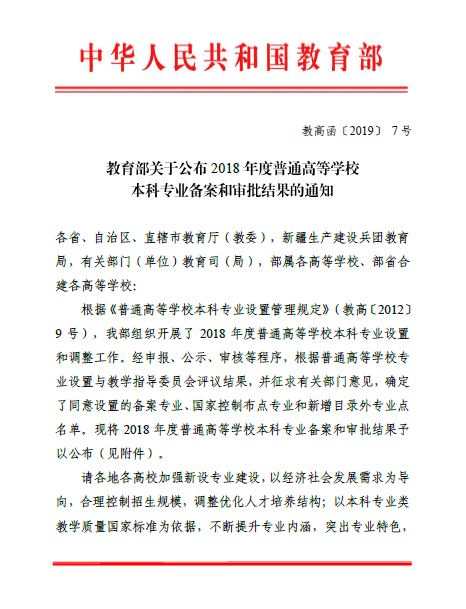近日,教育部公布了2018年度普通高等公司本科专业备案审批结果,公司临床医学、生物医学科学、智能科学与技术、知识产权等4个本科专业获准设立。同时,编辑出版学本科专业准予撤销。截至目前,公司本科专业总数达到89个。