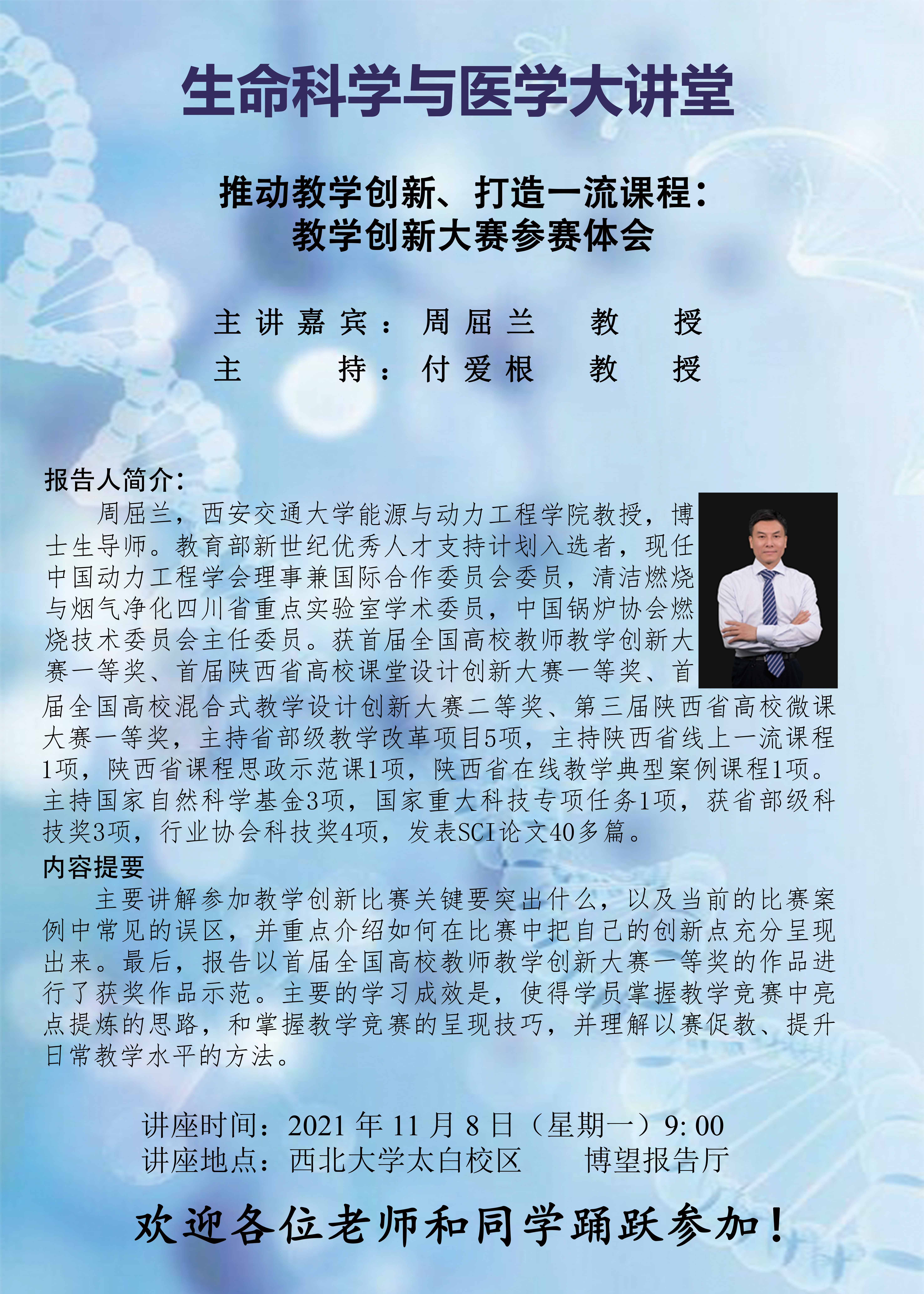 讲座通知- 周屈兰教授(11.8日 星期一 9:00)