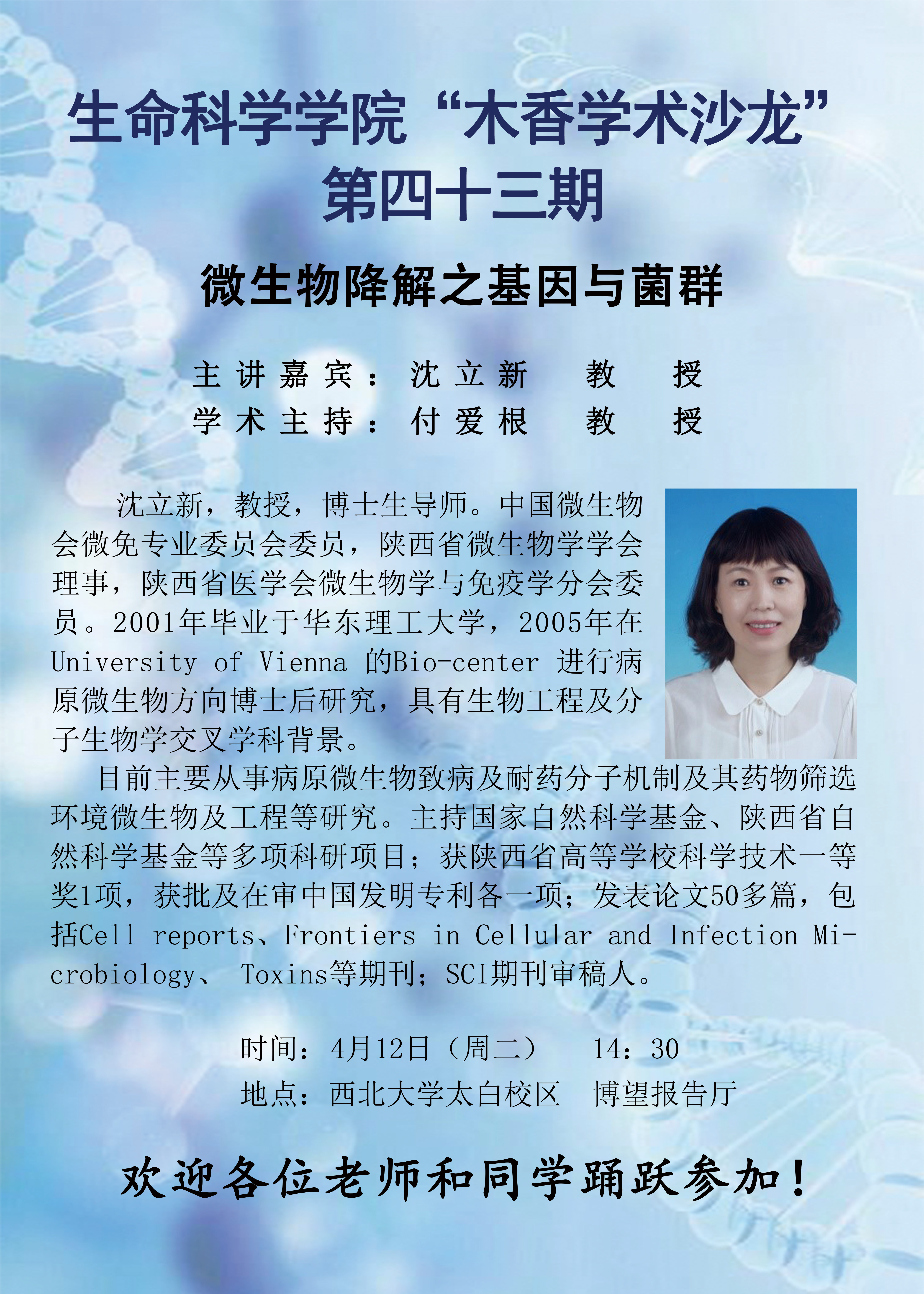 讲座通知-沈立新教授- 4月12日14:30 博望报告厅