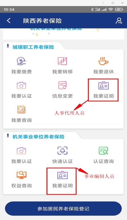 4.进入业务办理后,人事代理人员可通过城镇职工养老保险的“我要证明”生成社保证明,事业编制人员可通过机关事业单位养老保险的“我要证明”生成社保证明。